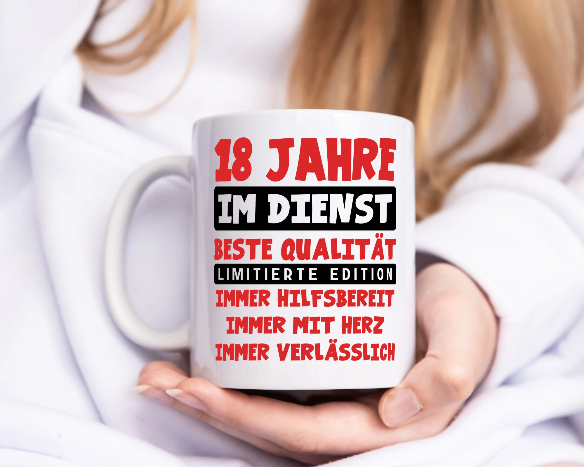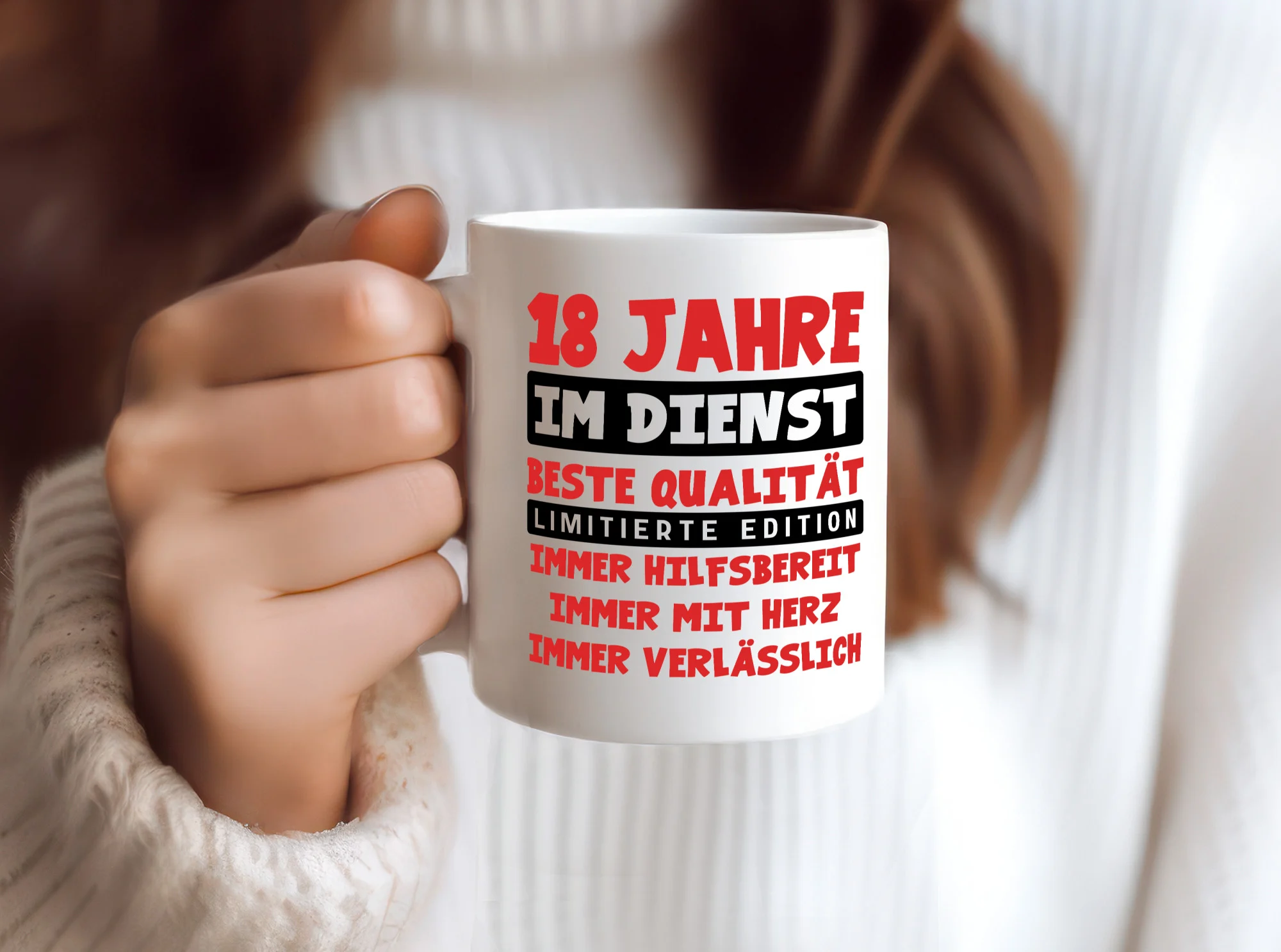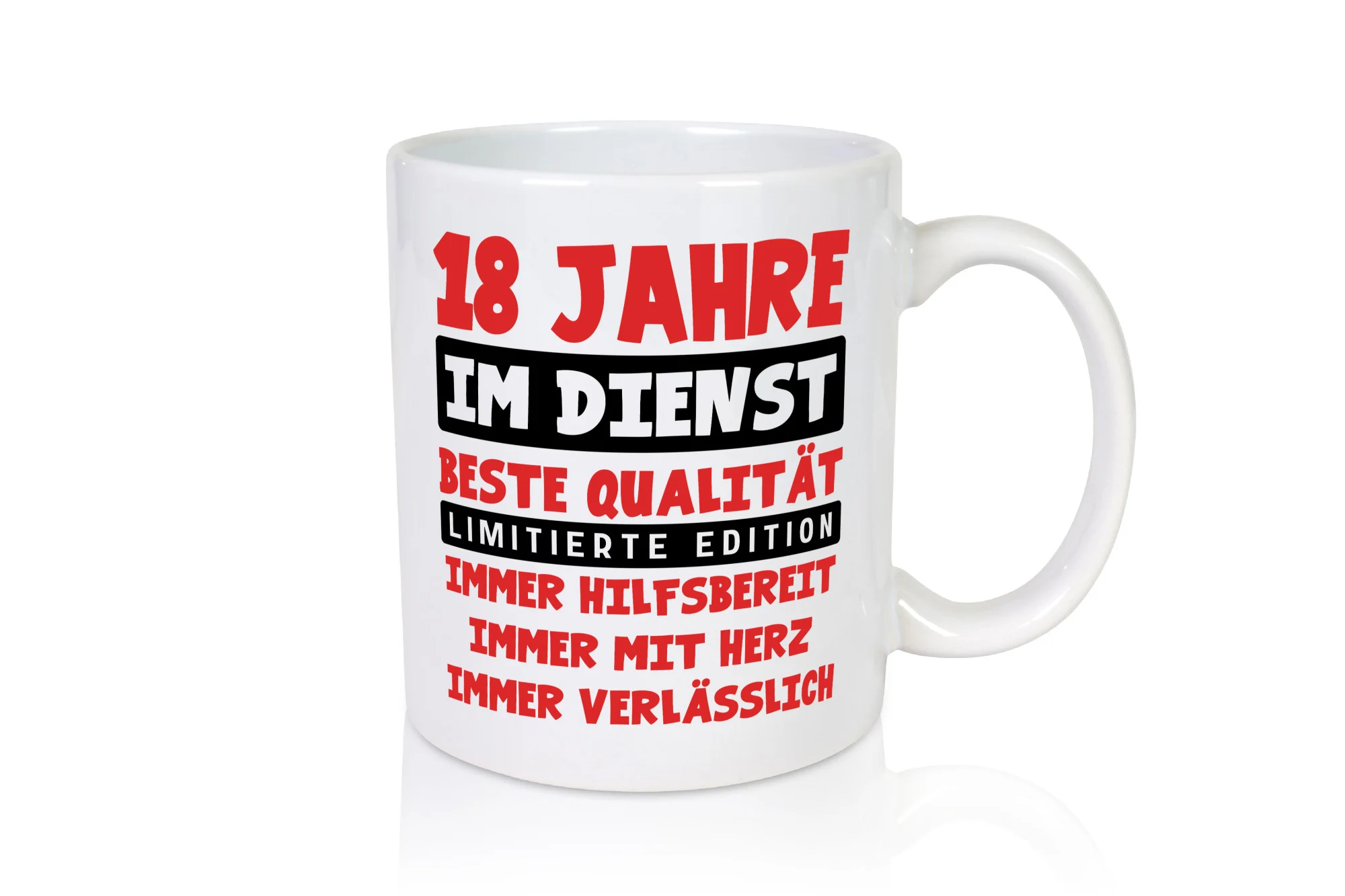 18 Jahre im Dienst | Jubiläum | Arbeit v9 – Tasse Weiß – Kaffeetasse / Geschenk / Familie