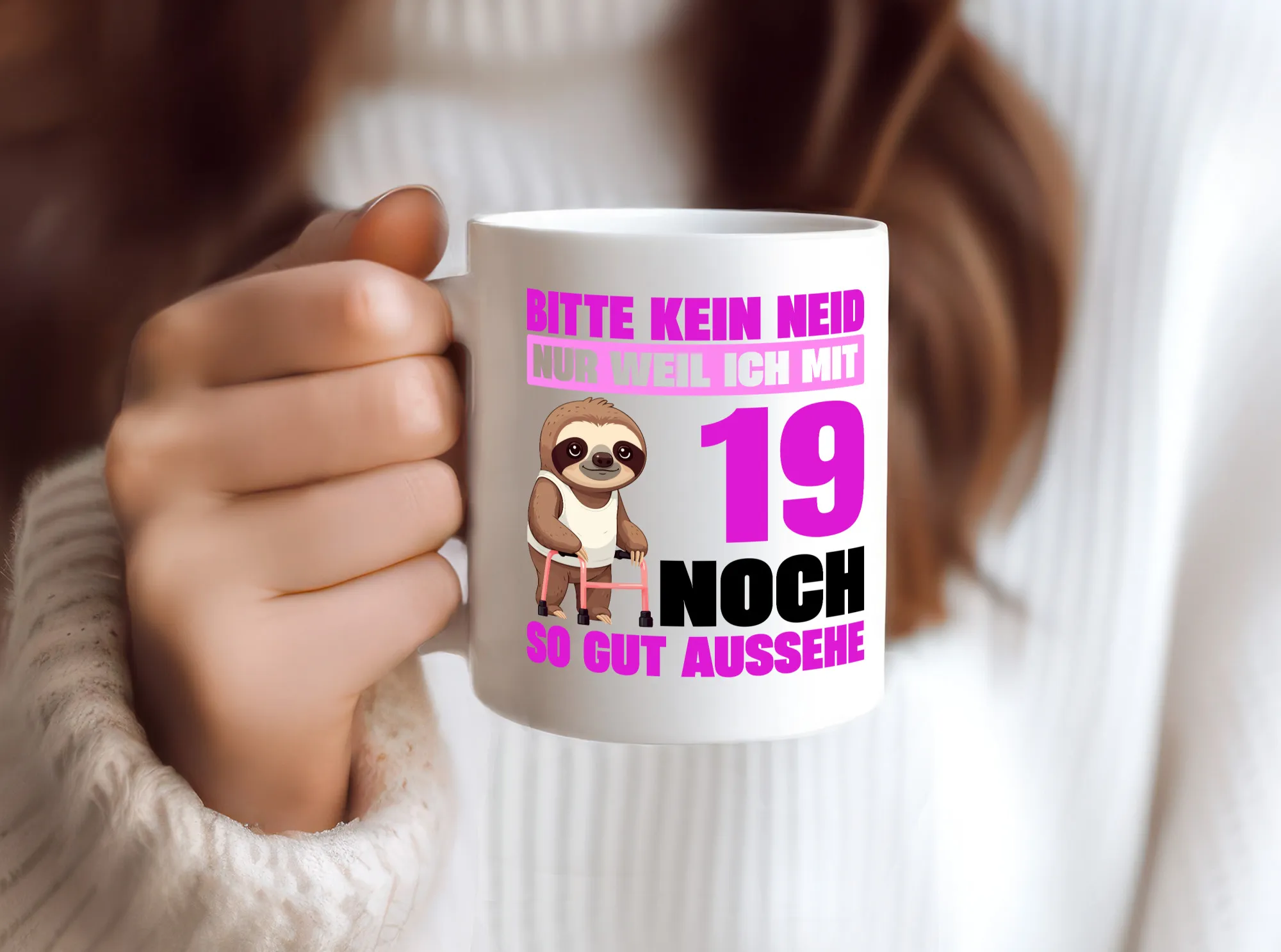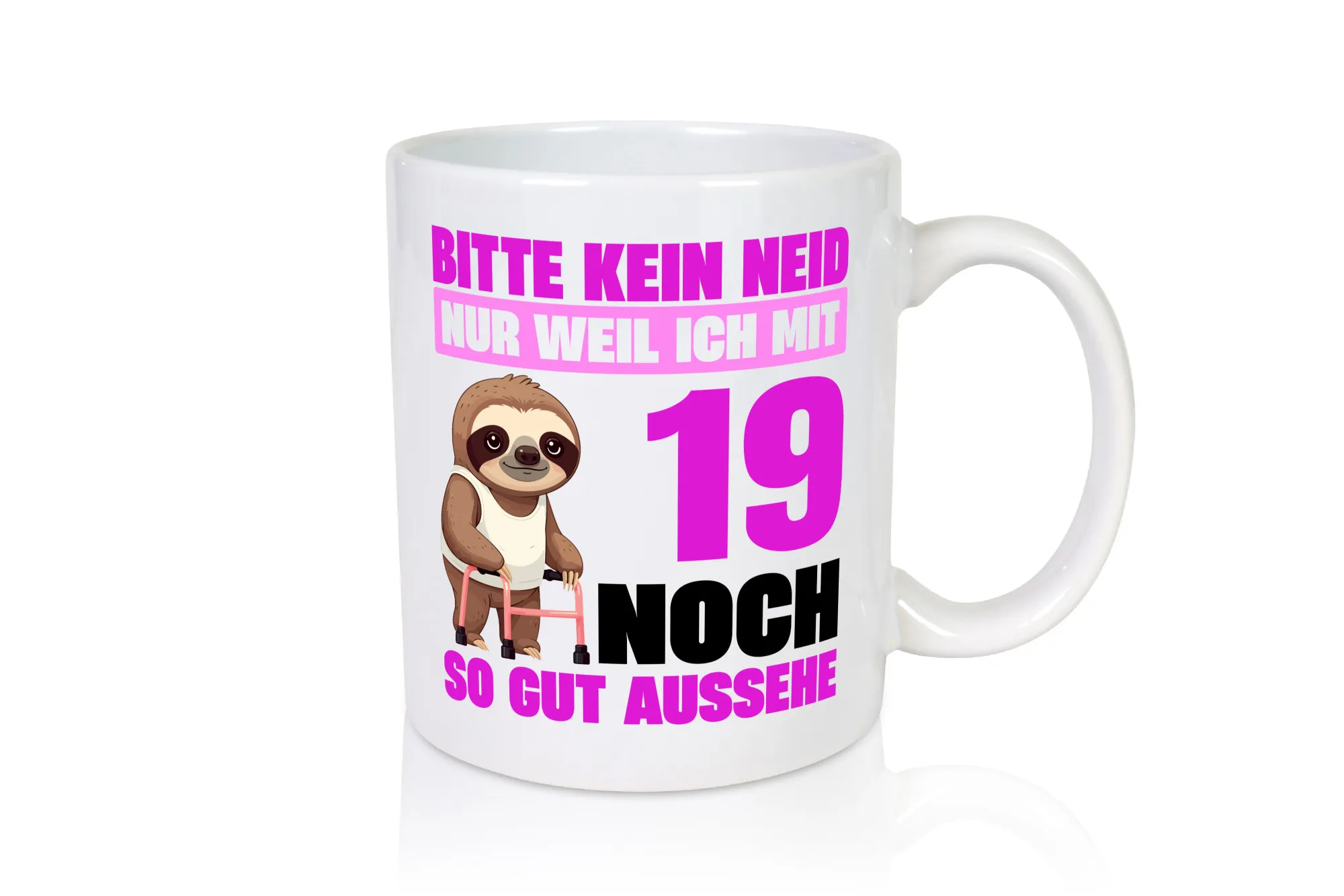 19. Geburtstag | Bitte kein neid | Faultier | 19 Jahre – Tasse Weiß – Kaffeetasse / Geschenk / Familie