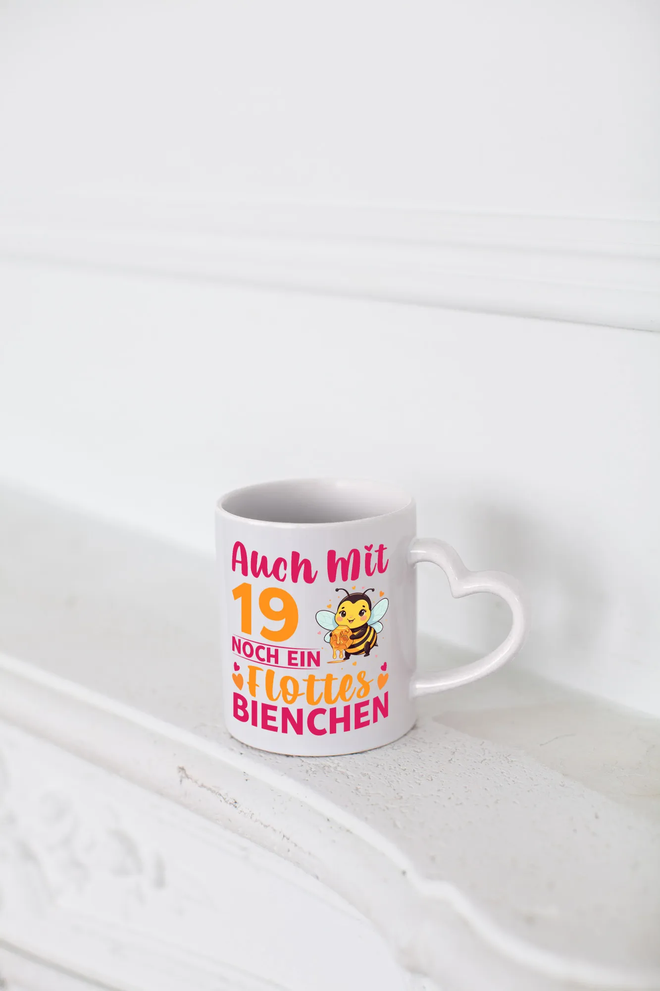 19. Geburtstag | Flottes Bienchen | 19 Jahre – Herzhenkel Tasse – Kaffeetasse / Geschenk / Familie