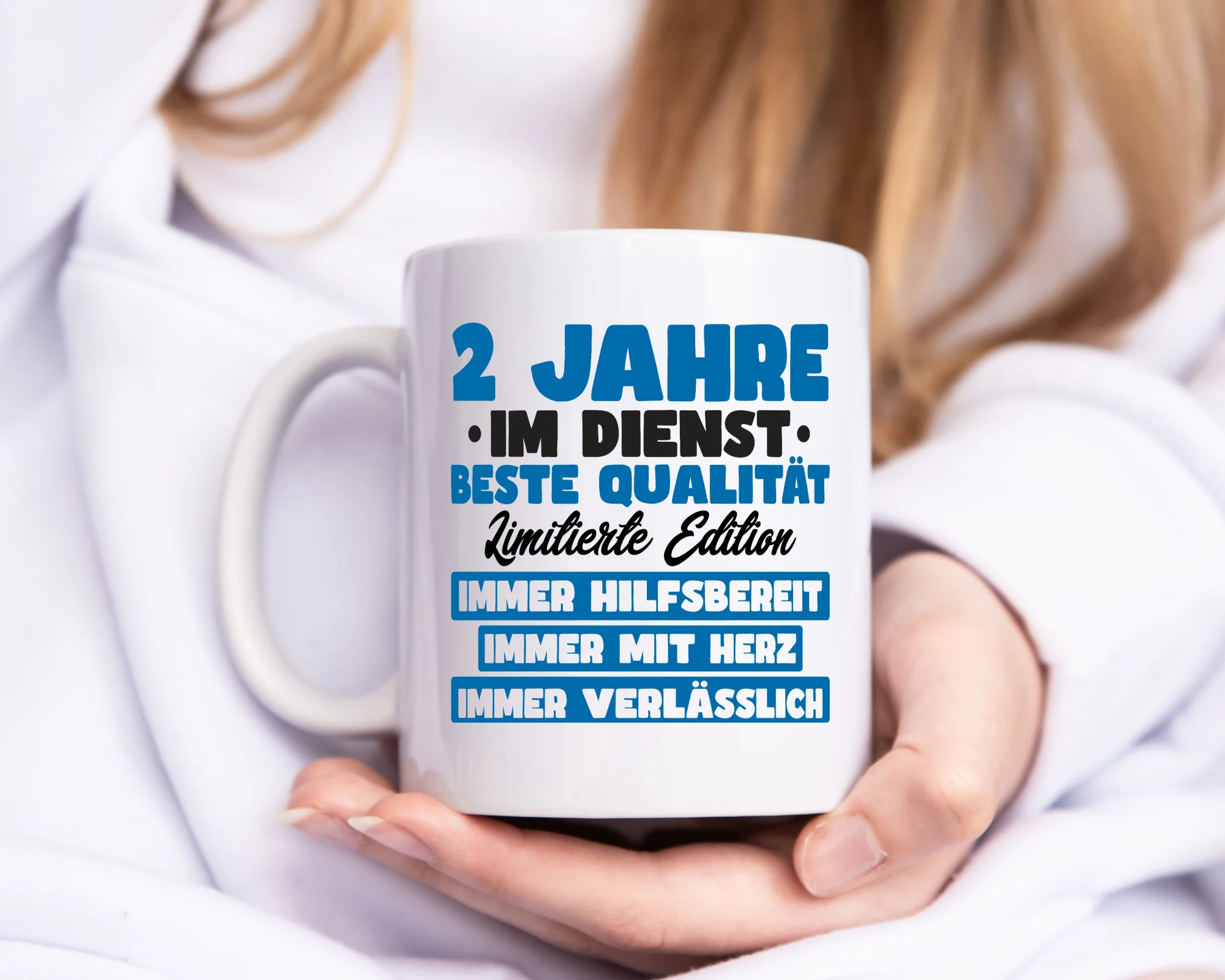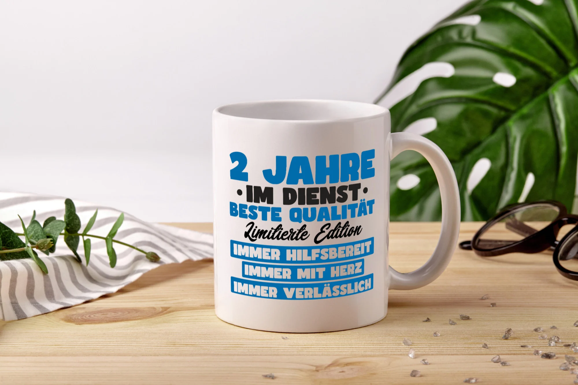 2 Jahre im Dienst | Jubiläum | Arbeit v7 – Tasse Weiß – Kaffeetasse / Geschenk / Familie
