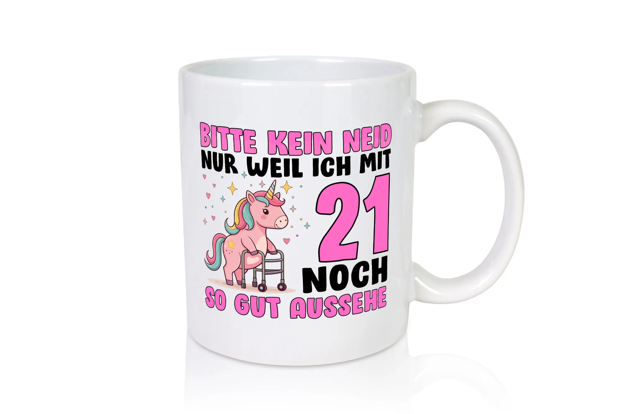 21. Geburtstag | 21 Jahre | Mit 21 noch so gut aussehen v2 – Tasse Weiß – Kaffeetasse / Geschenk / Familie