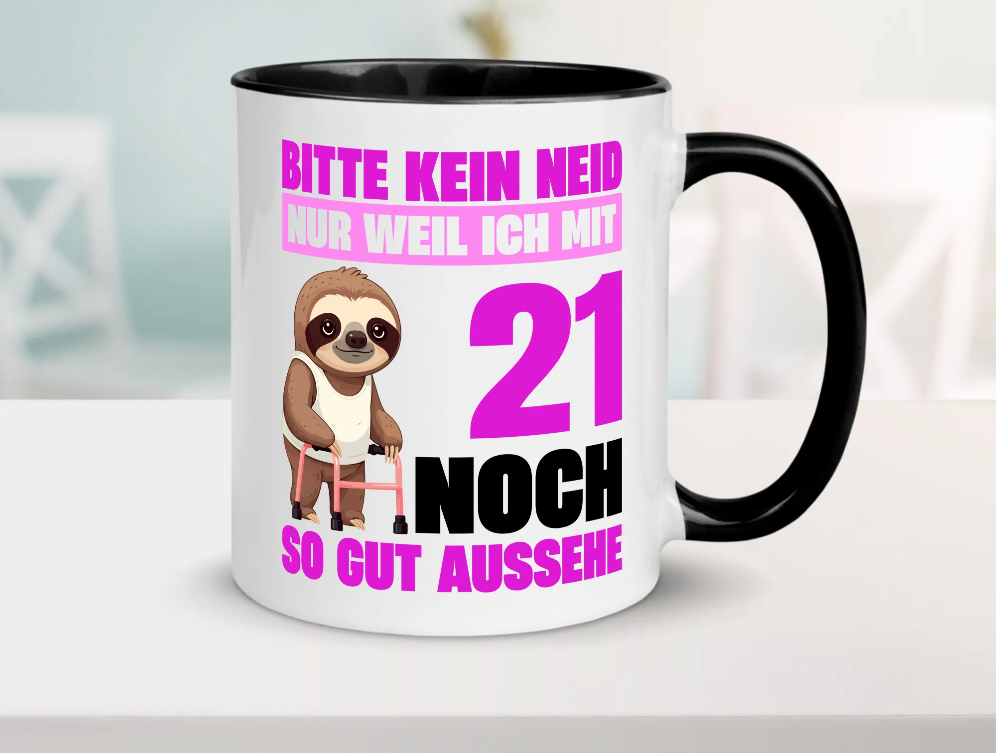 21. Geburtstag | Bitte kein neid | Faultier | 21 Jahre Farbige Tasse – Kaffeetasse / Geschenk / Familie