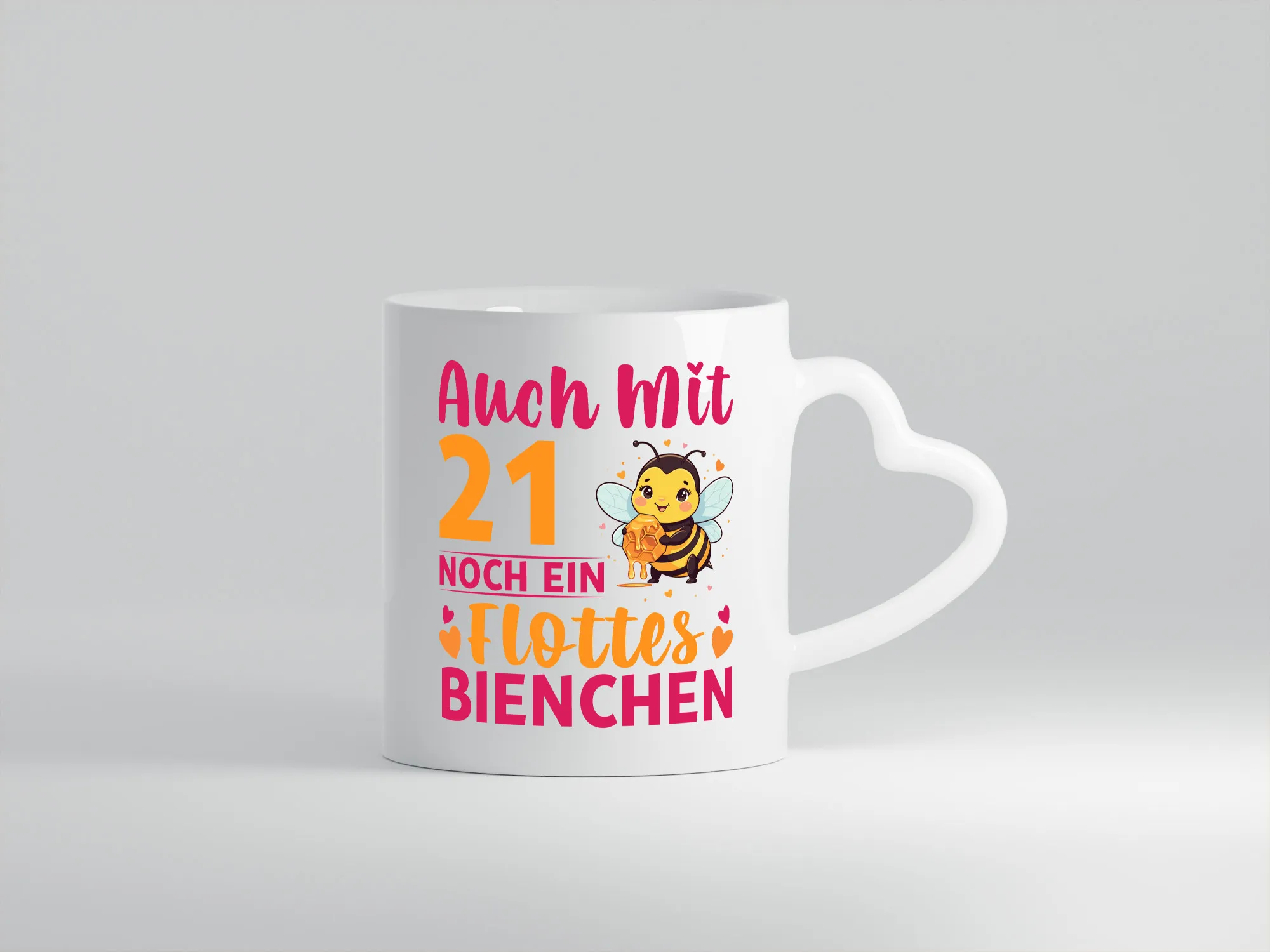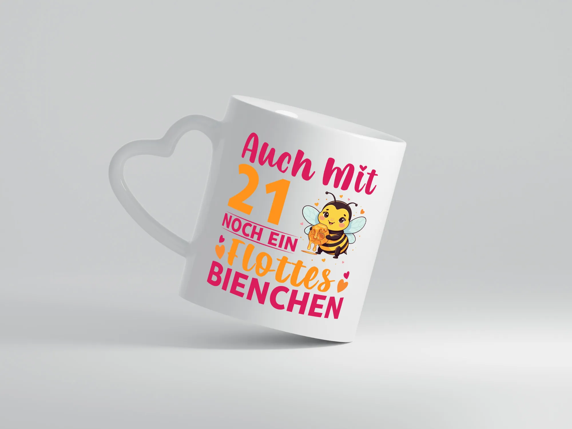 21. Geburtstag | Flottes Bienchen | 21 Jahre – Herzhenkel Tasse – Kaffeetasse / Geschenk / Familie