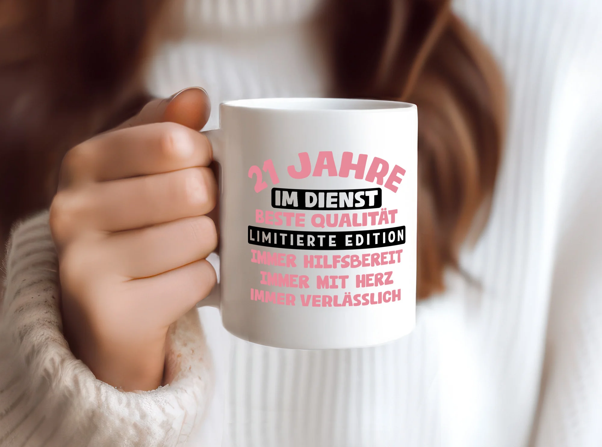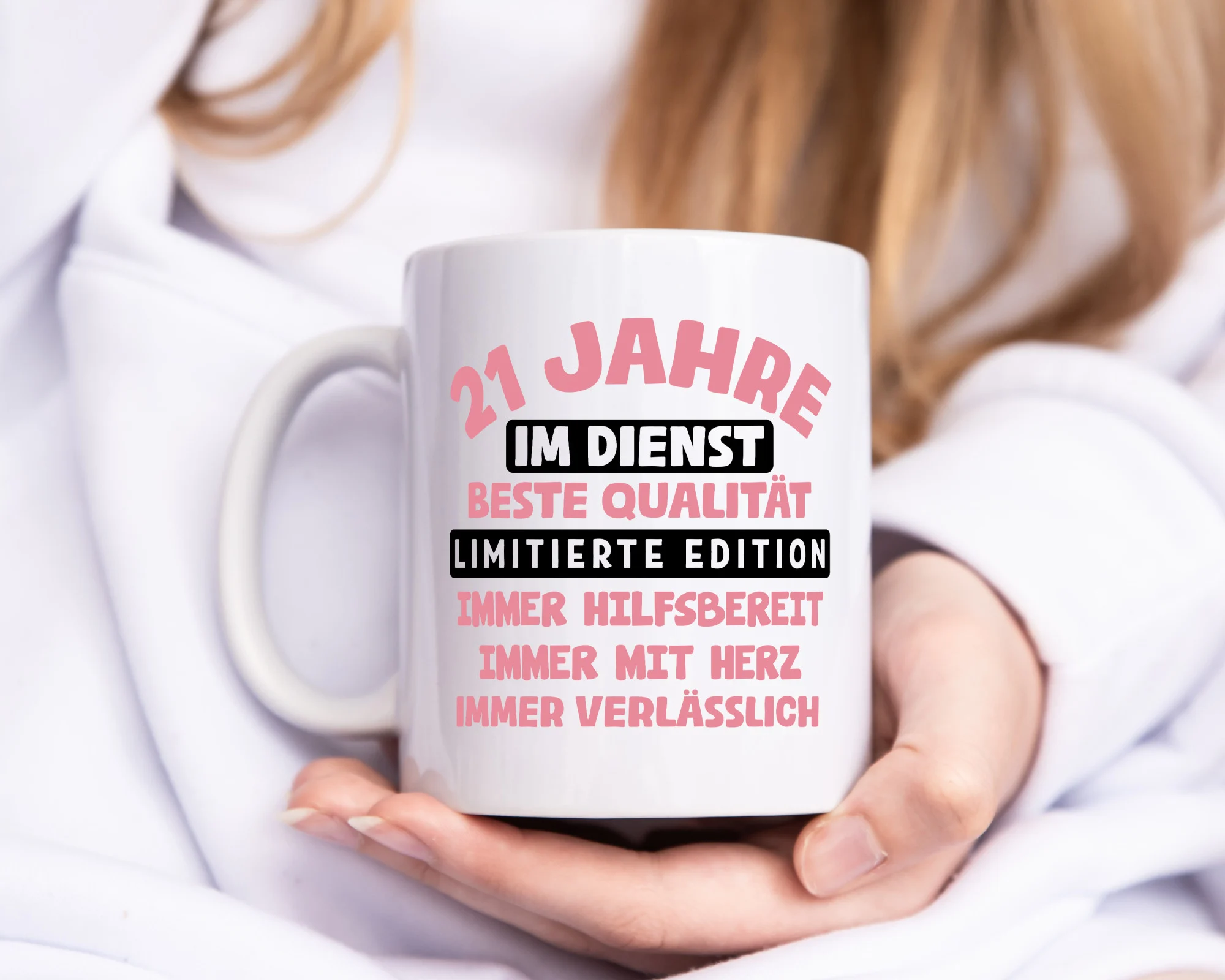 21 Jahre im Dienst | Jubiläum | Arbeit v11 – Tasse Weiß – Kaffeetasse / Geschenk / Familie