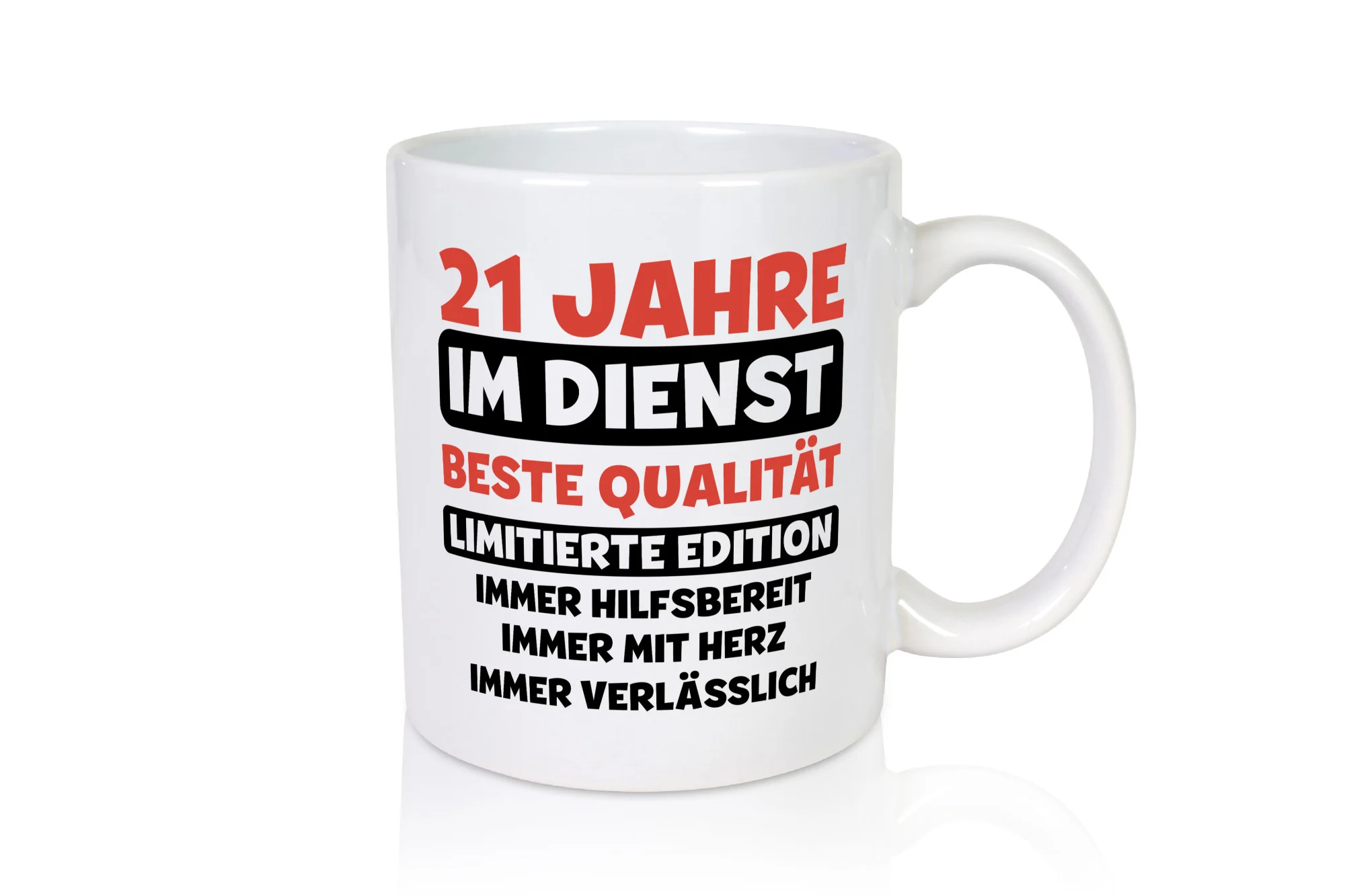 21 Jahre im Dienst | Jubiläum | Arbeit v3 – Tasse Weiß – Kaffeetasse / Geschenk / Familie