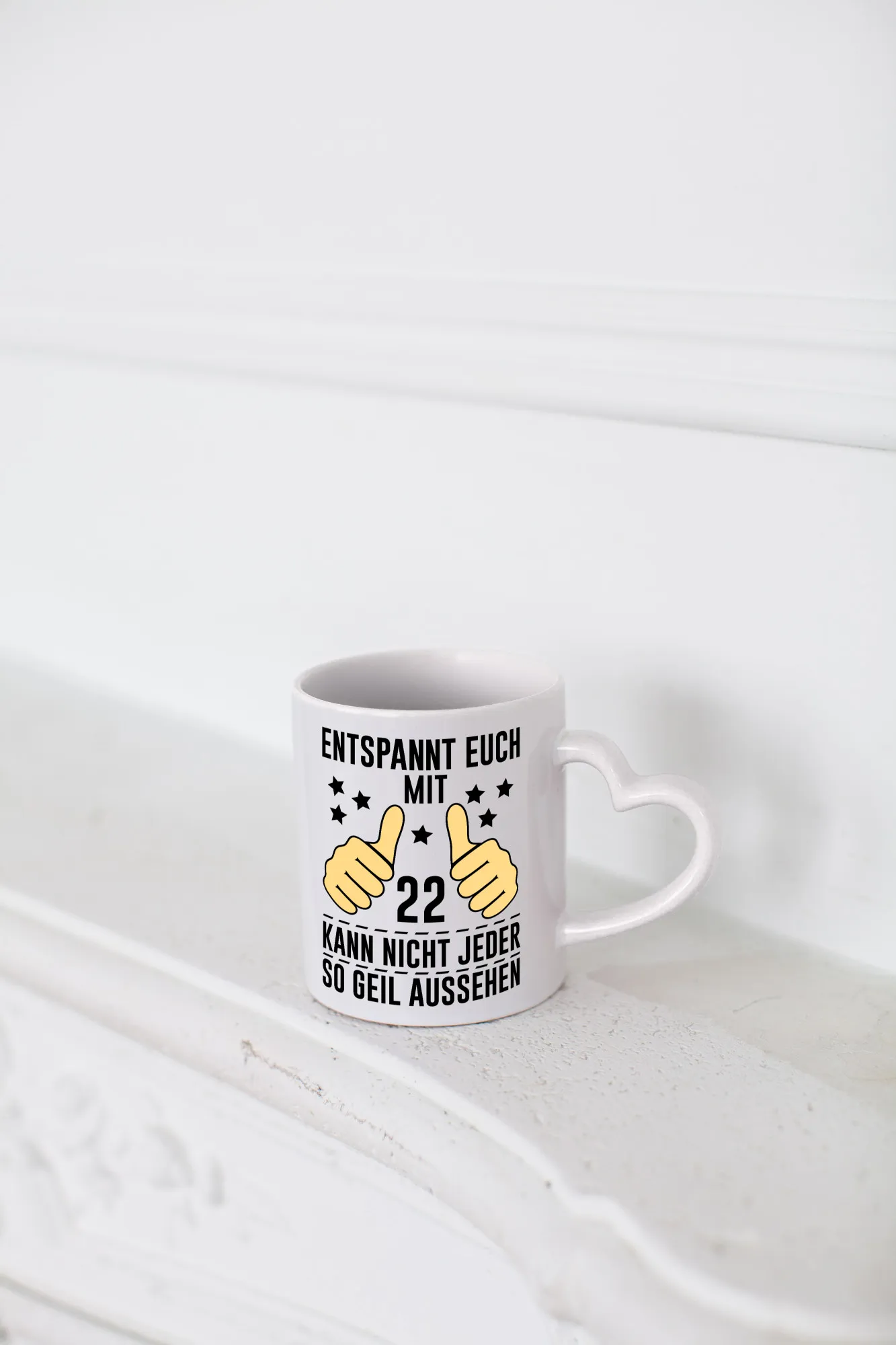 22. Geburtstag | 22 Jahre | Geil aussehen | Entspannt euch v2 – Herzhenkel Tasse – Kaffeetasse / Geschenk / Familie