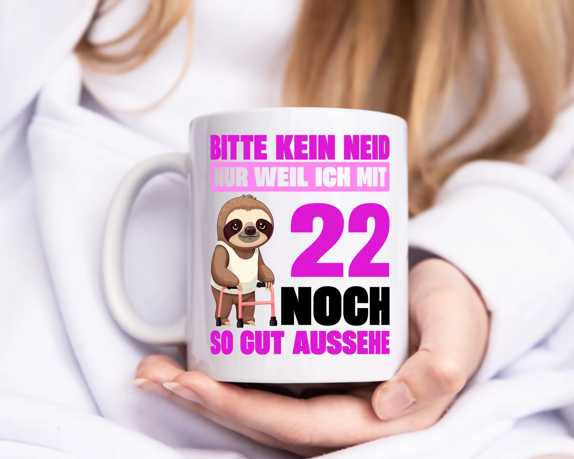 22. Geburtstag | Bitte kein neid | Faultier | 22 Jahre – Tasse Weiß – Kaffeetasse / Geschenk / Familie