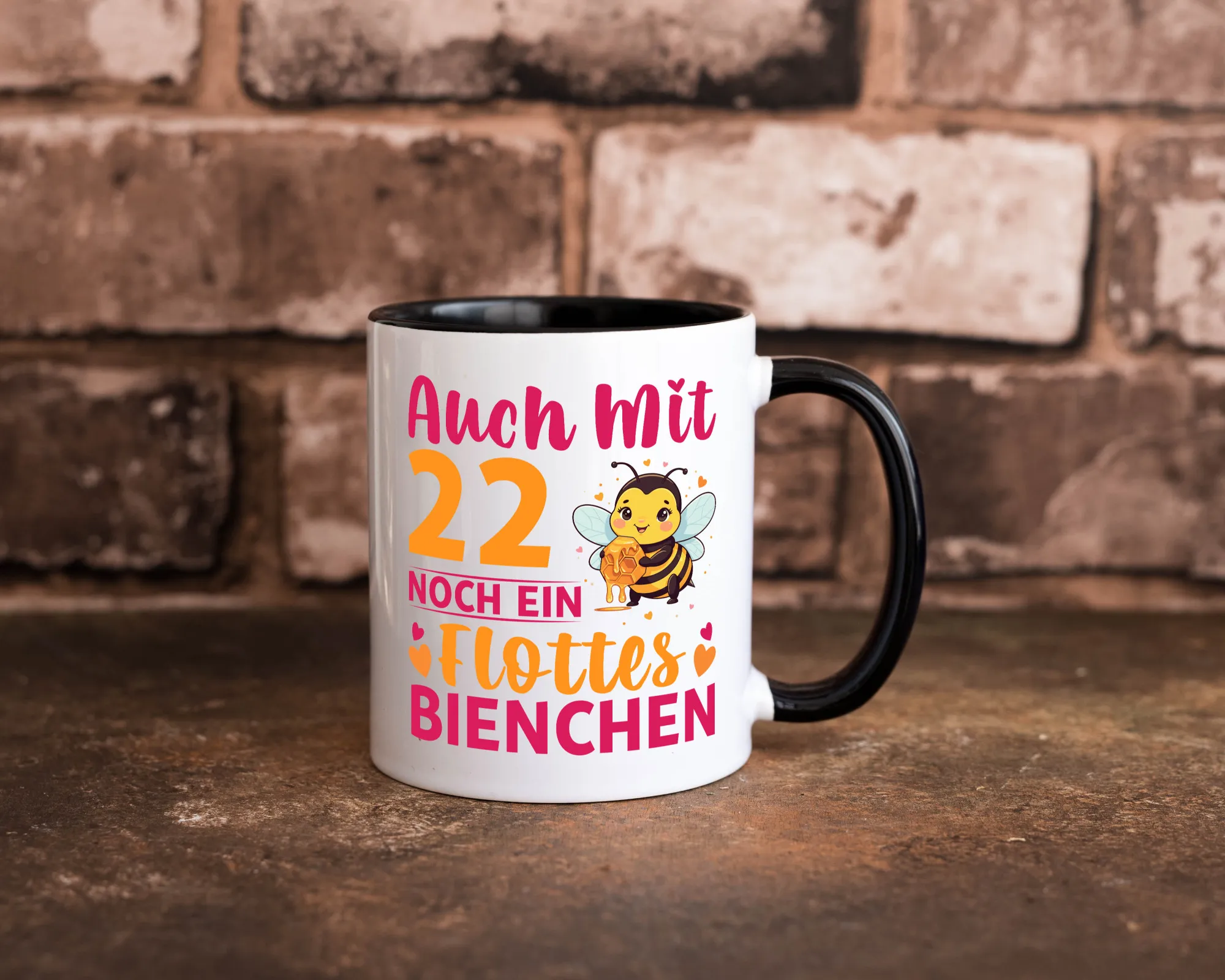 22. Geburtstag | Flottes Bienchen | 22 Jahre Farbige Tasse – Kaffeetasse / Geschenk / Familie