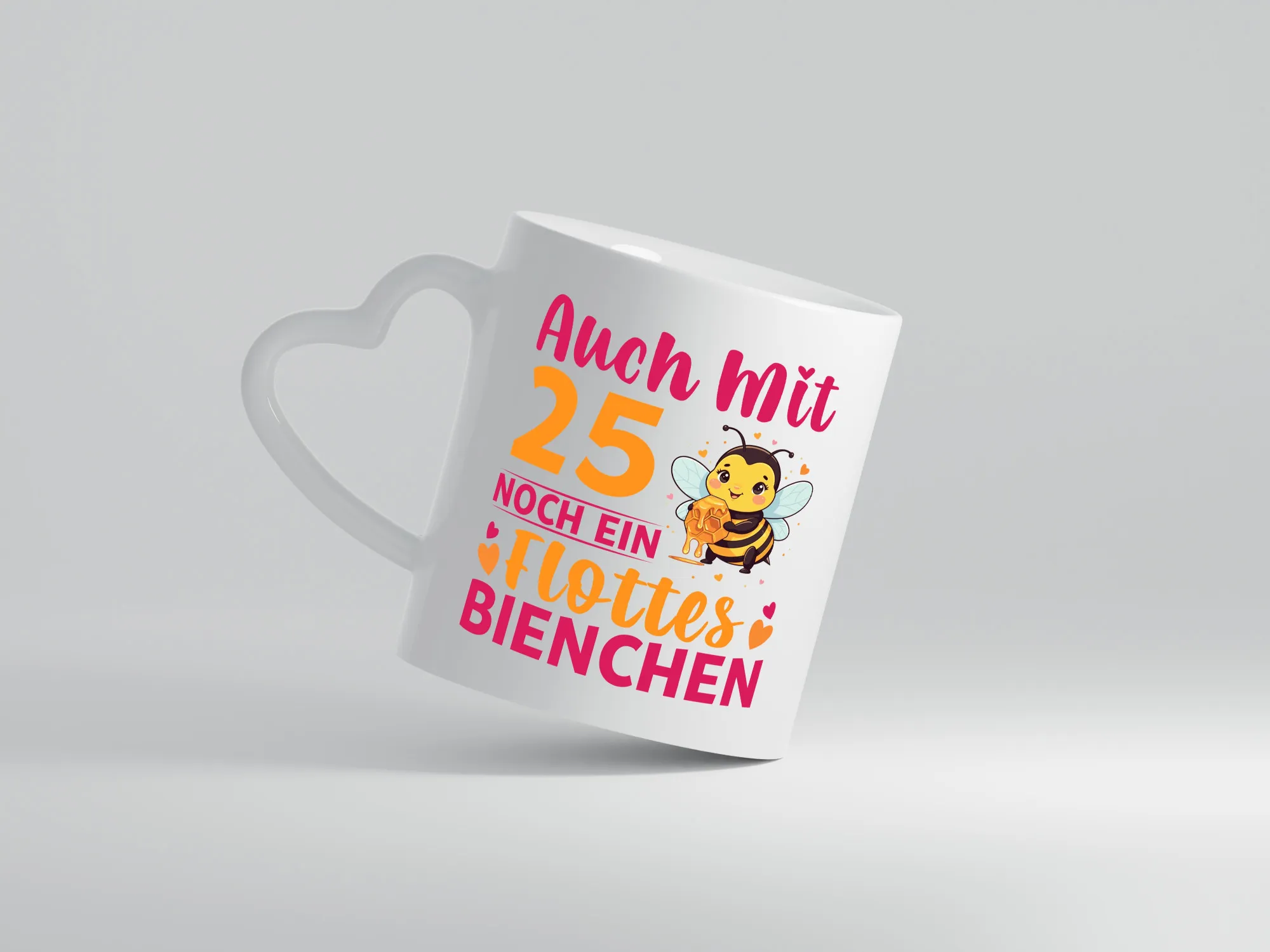 25. Geburtstag | Flottes Bienchen | 25 Jahre – Herzhenkel Tasse – Kaffeetasse / Geschenk / Familie