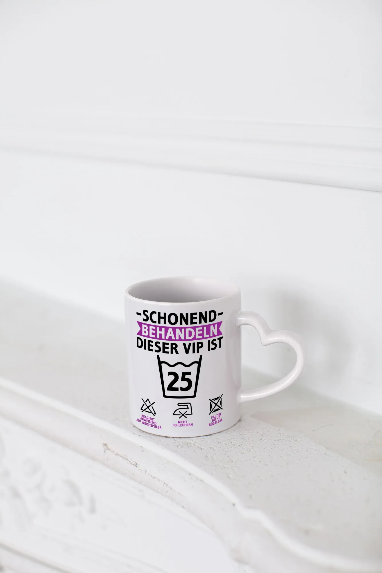 25 Geburtstag | schonend behandeln | 25 Jahre v2 – Herzhenkel Tasse – Kaffeetasse / Geschenk / Familie