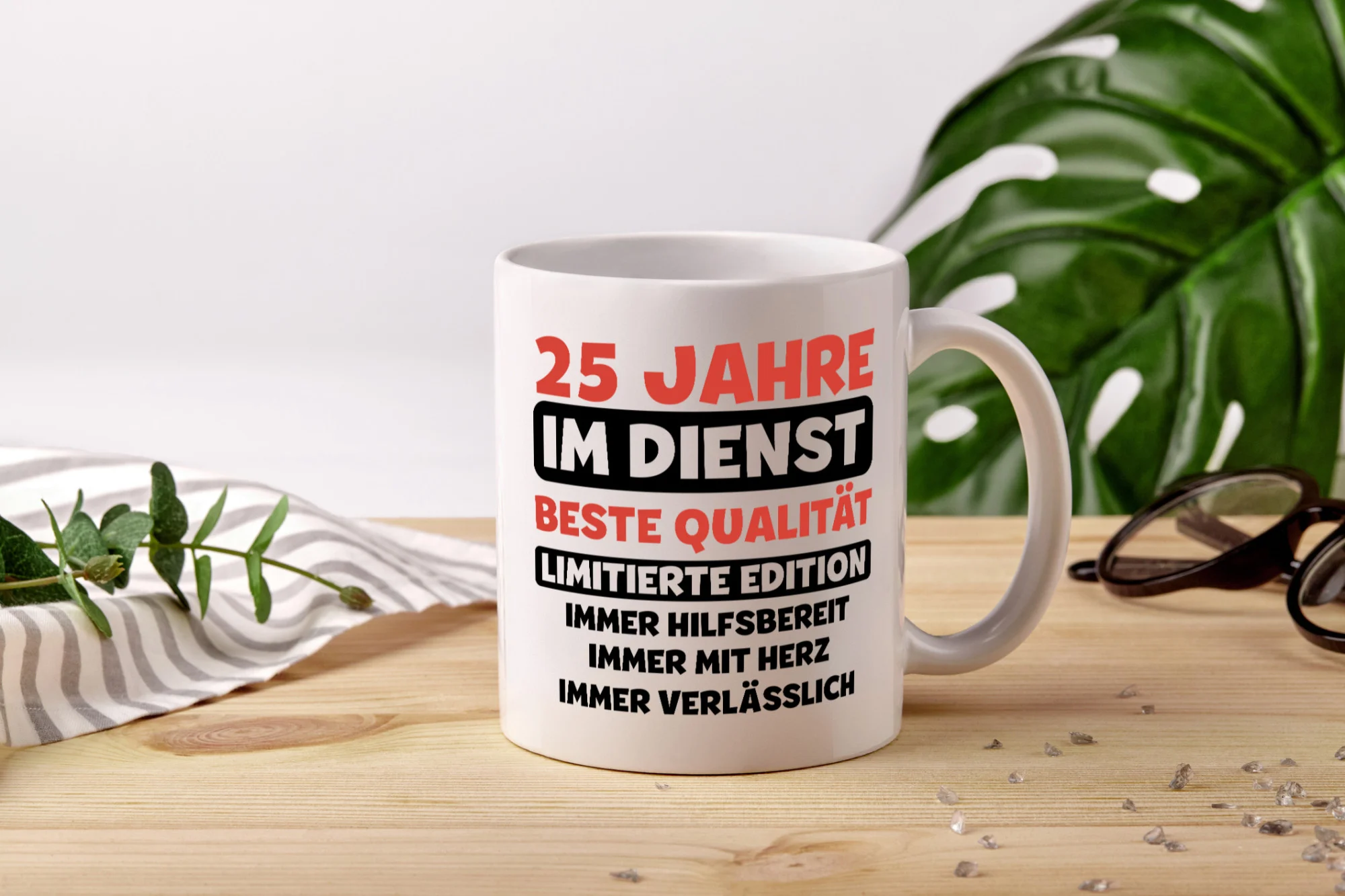 25 Jahre im Dienst | Jubiläum | Arbeit v3 – Tasse Weiß – Kaffeetasse / Geschenk / Familie