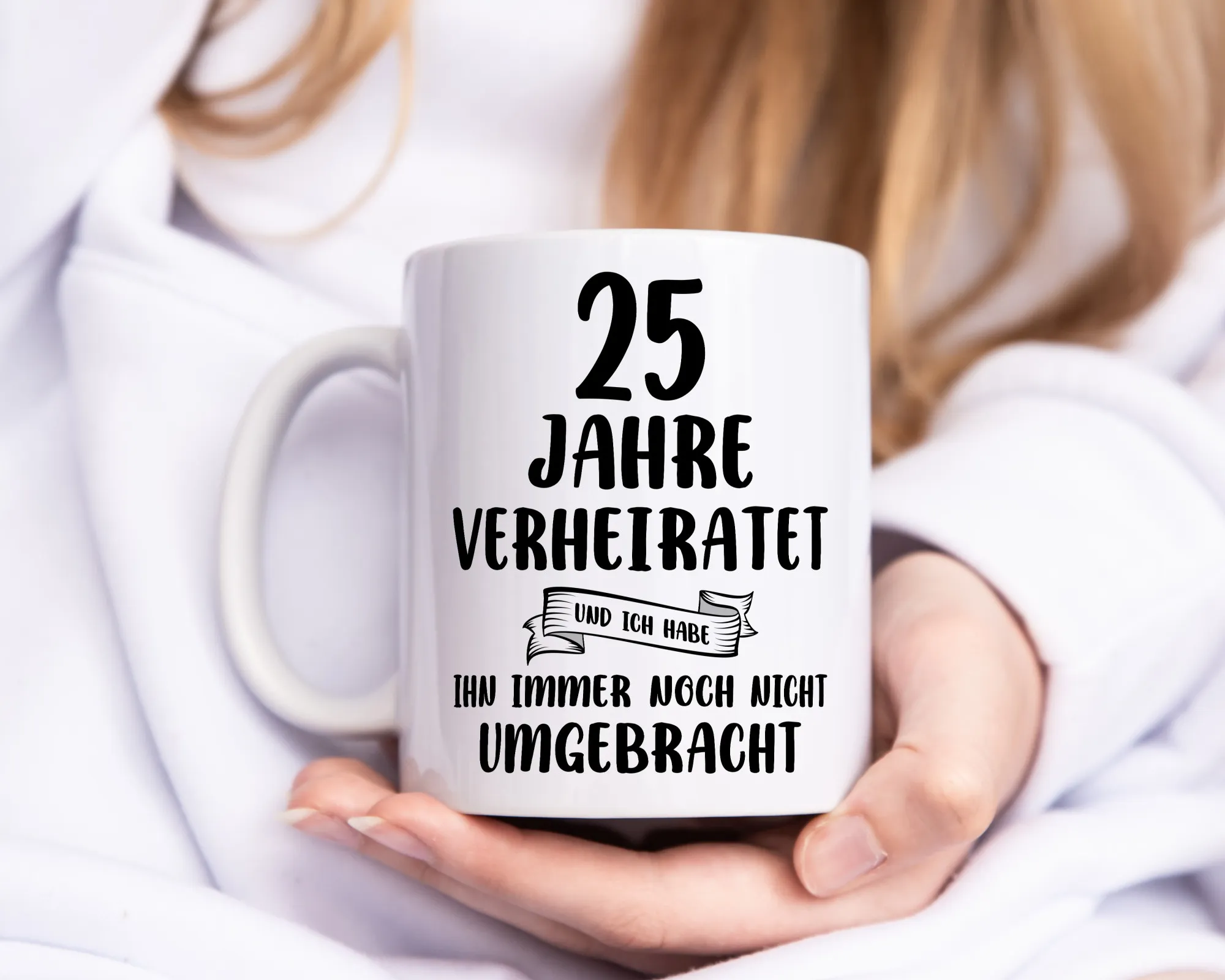 25 Jahre Verheiratet, immer noch am Leben! – Tasse Weiß – Kaffeetasse / Geschenk / Familie