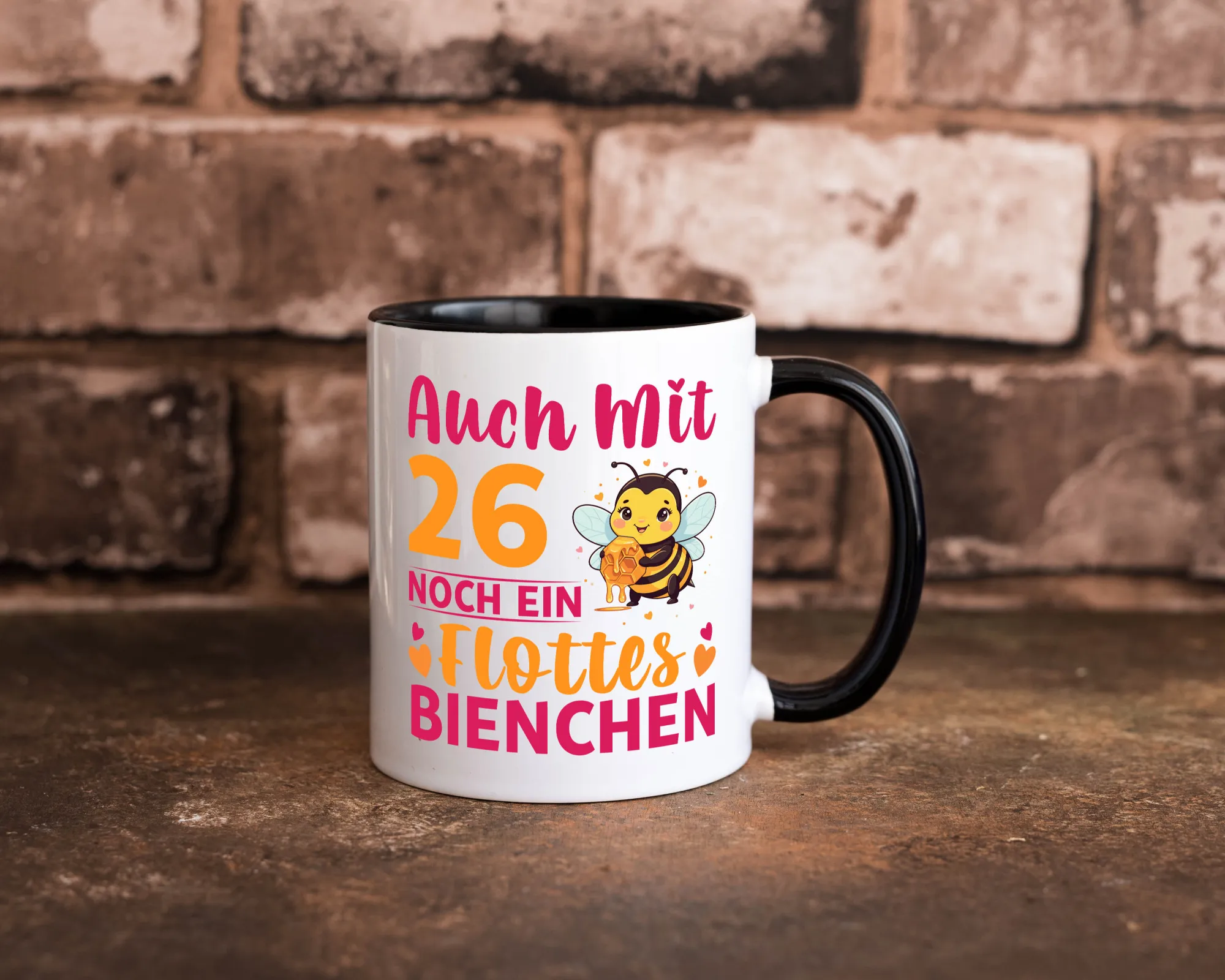 26. Geburtstag | Flottes Bienchen | 26 Jahre Farbige Tasse – Kaffeetasse / Geschenk / Familie