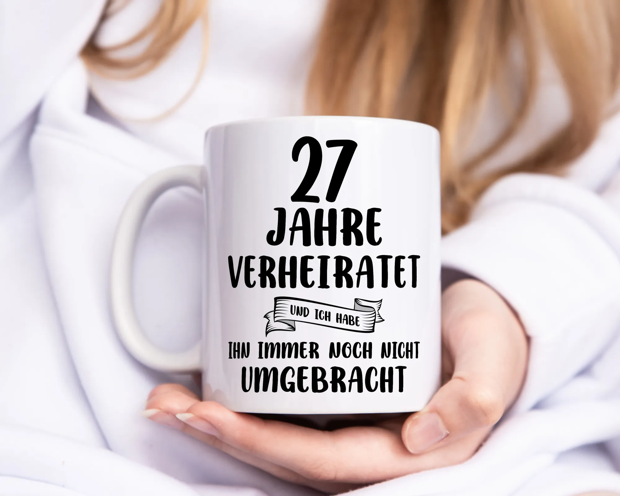 27 Jahre Verheiratet, immer noch am Leben! – Tasse Weiß – Kaffeetasse / Geschenk / Familie