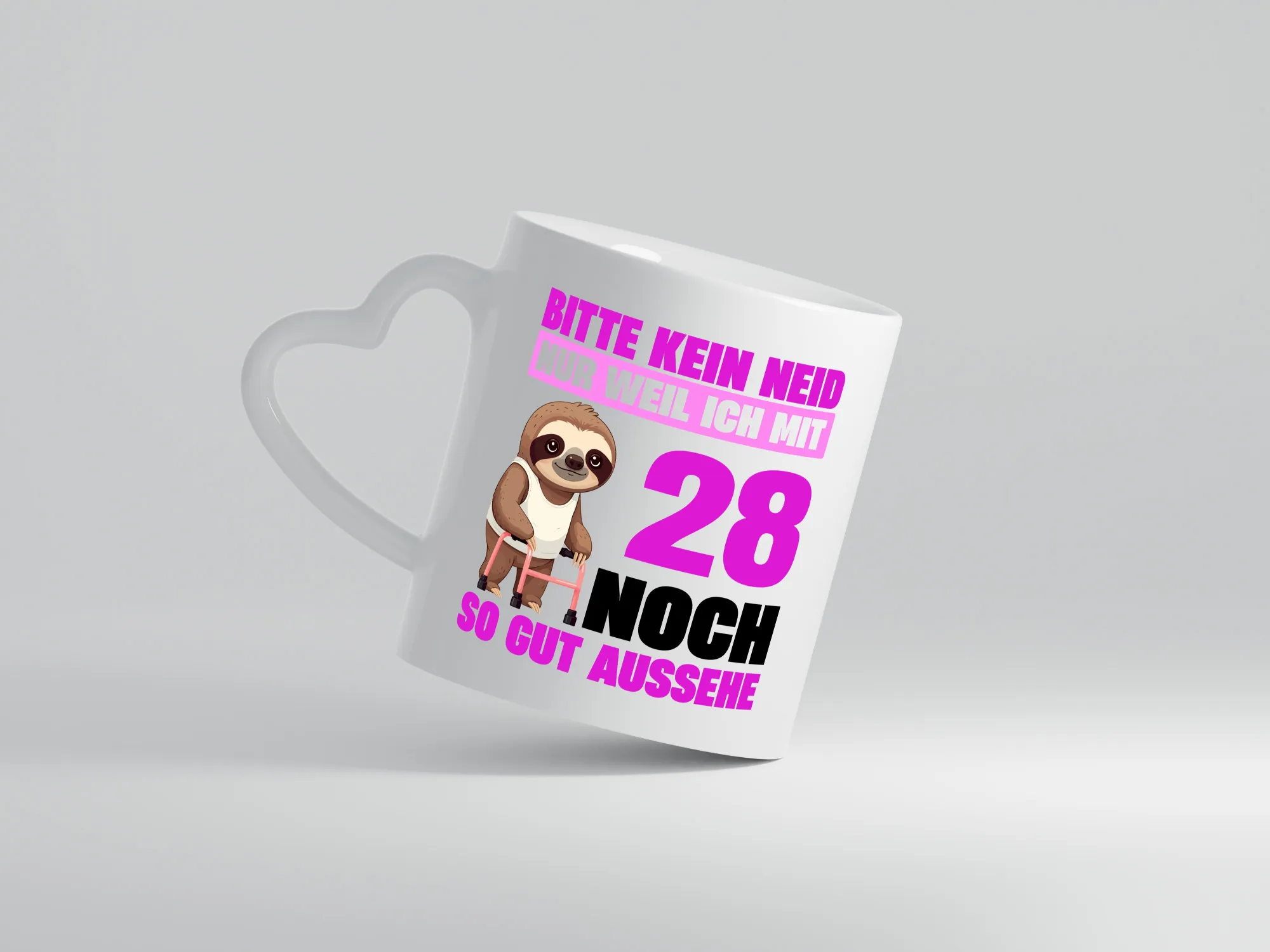 28. Geburtstag | Bitte kein neid | Faultier | 28 Jahre – Herzhenkel Tasse – Kaffeetasse / Geschenk / Familie