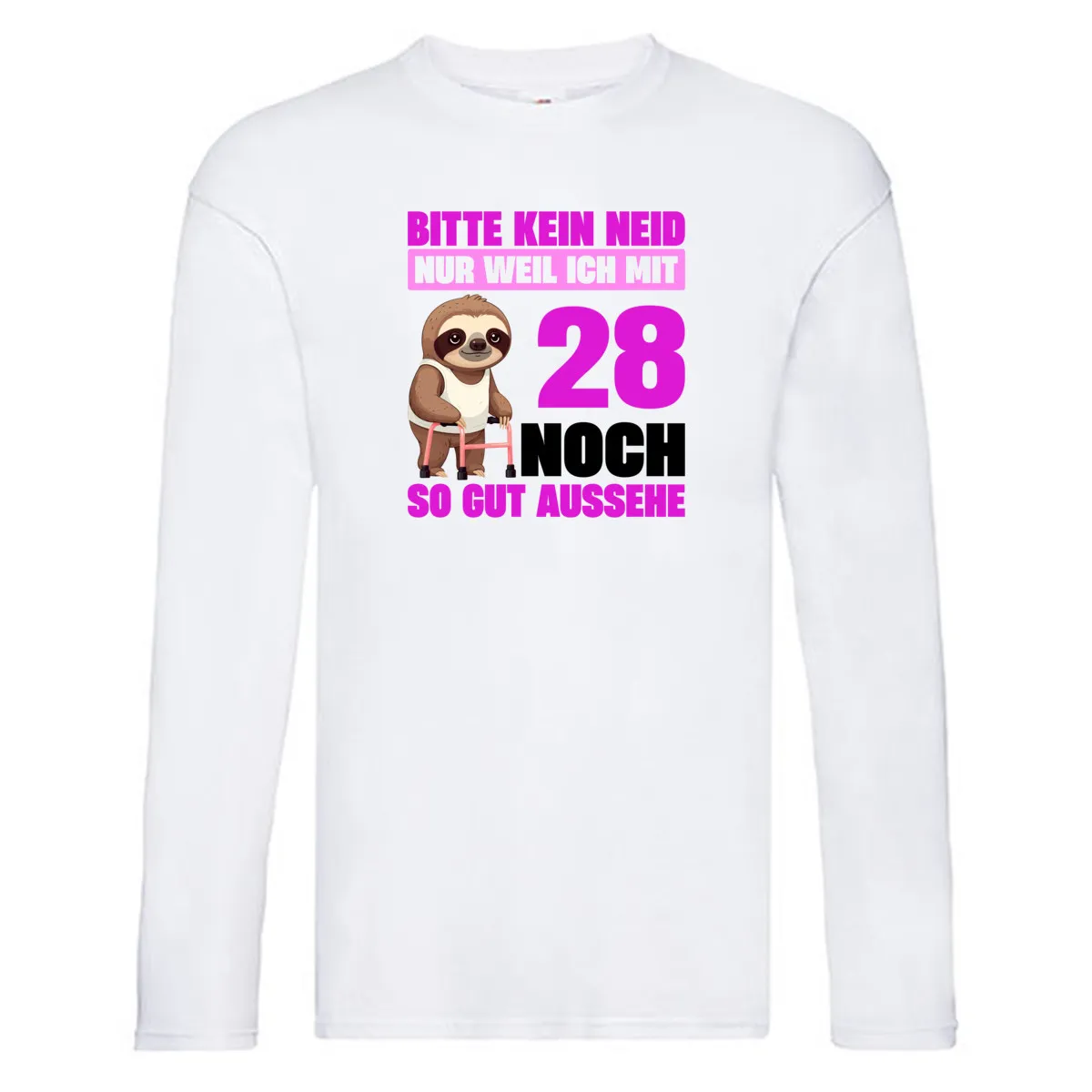 28. Geburtstag | Bitte kein neid | Faultier | 28 Jahre Long Sleeve Weiß