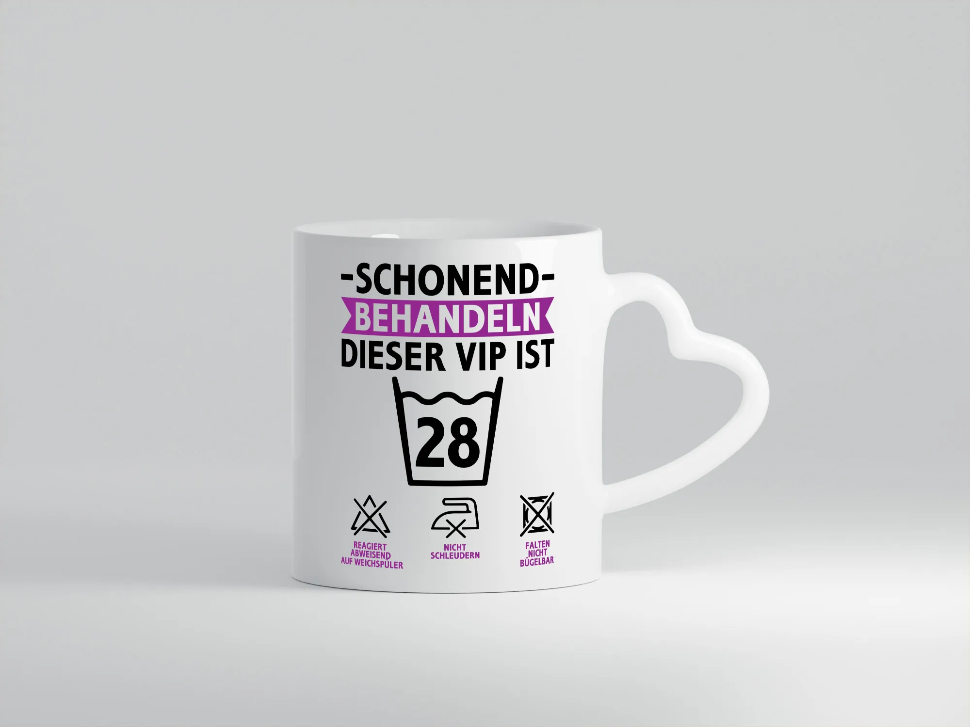 28 Geburtstag | schonend behandeln | 28 Jahre v2 – Herzhenkel Tasse – Kaffeetasse / Geschenk / Familie