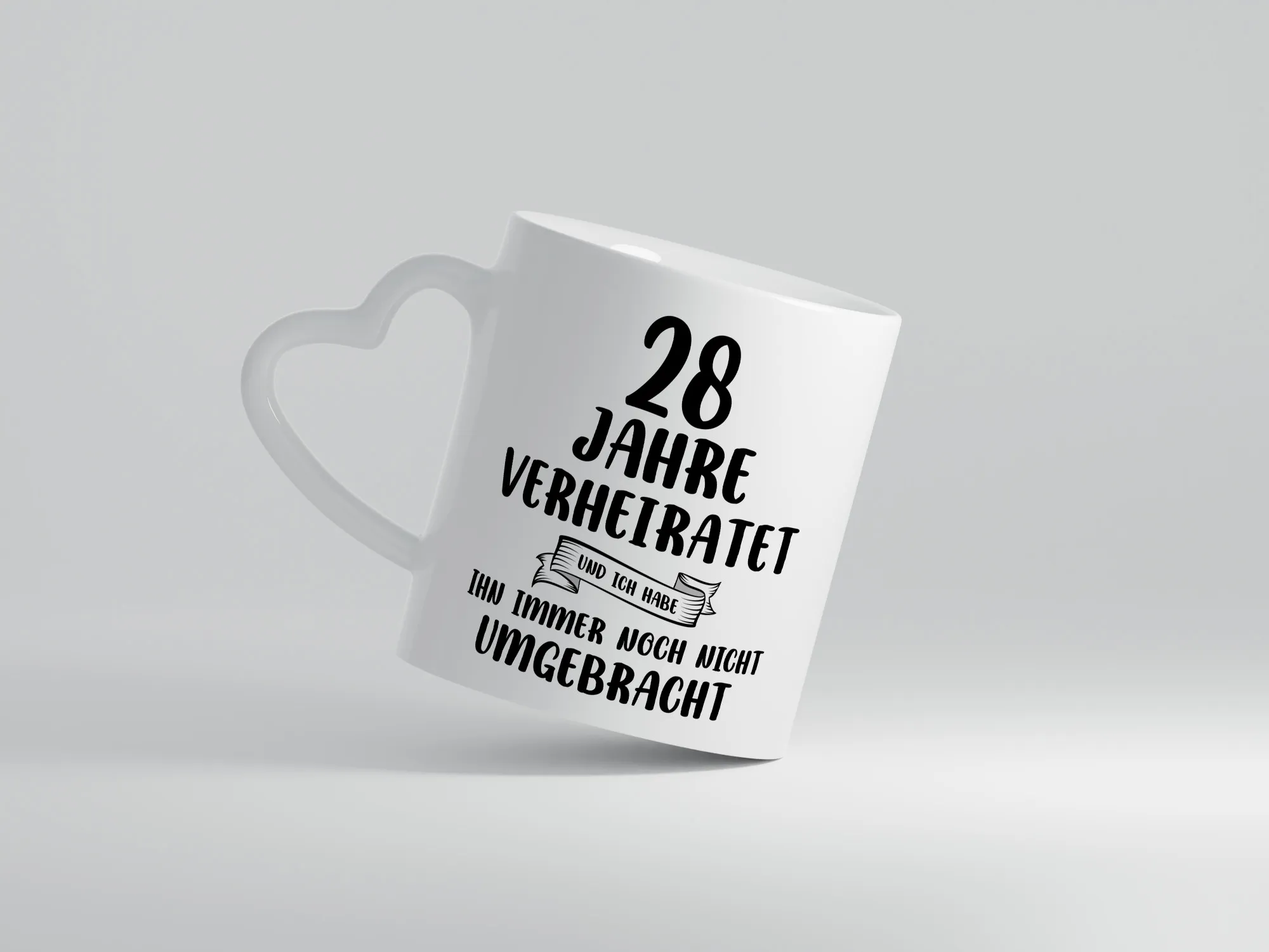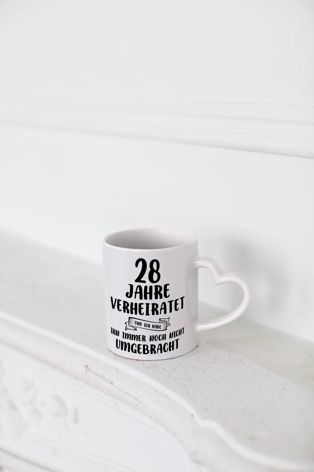 28 Jahre Verheiratet, immer noch am Leben! – Herzhenkel Tasse – Kaffeetasse / Geschenk / Familie