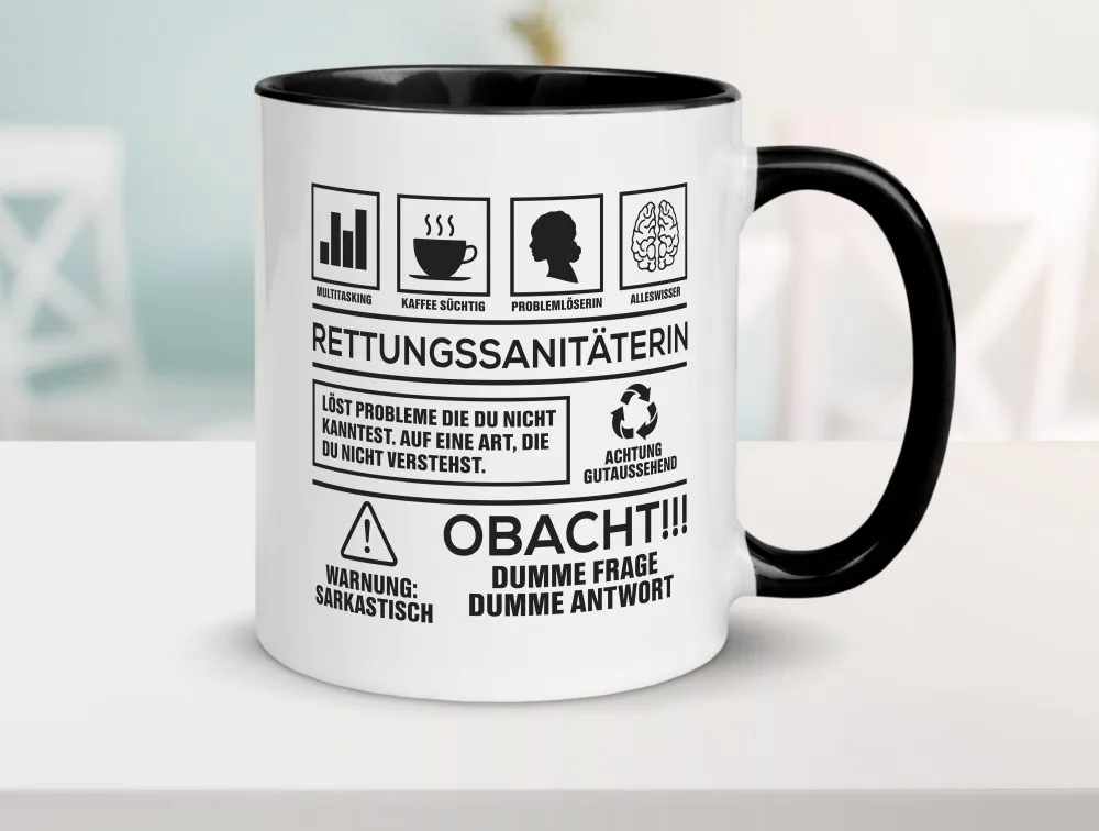 Unsere Tassen werden mit viel Liebe zum Detail gestaltet und in sorgfältiger Handarbeit beidseitig bedruckt. Es handelt sich bei den Spruchtassen nicht um reine Dekorationsobjekte, sondern um lebensmittelechte Qualitätsware Made in Germany. Nicht nur der Druck unserer Motive wird in Deutschland ausgeführt, sondern wir versenden unsere Produkte auch von hier aus. Für langlebige Produkte und höchste Kundenzufriedenheit!