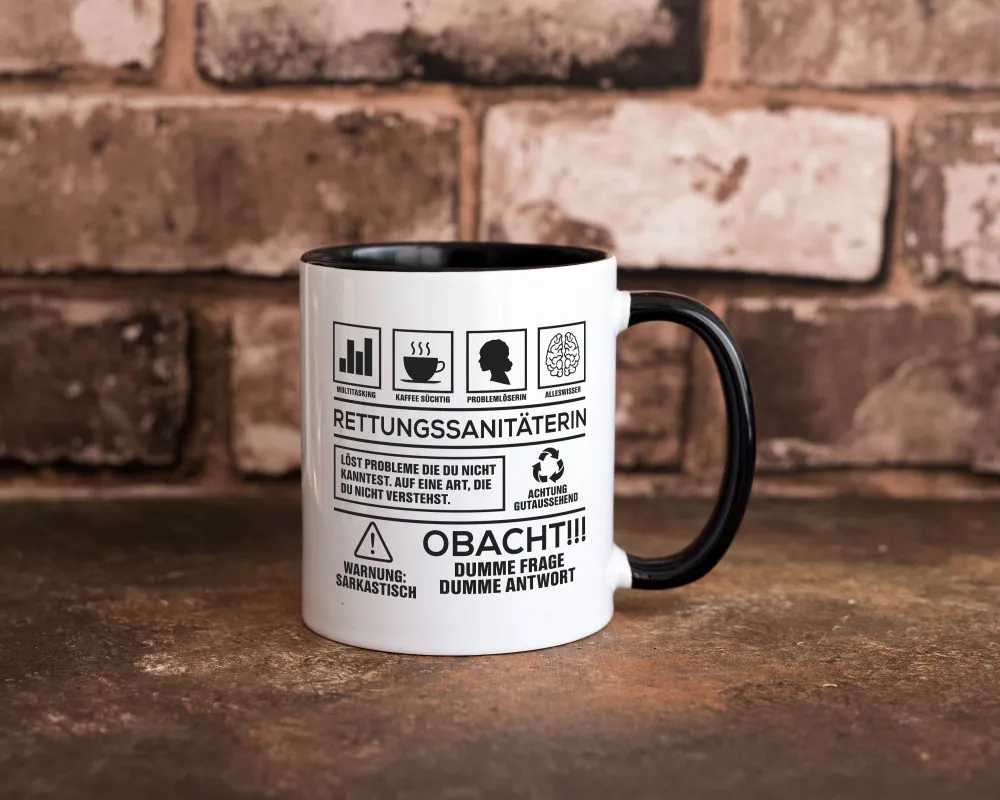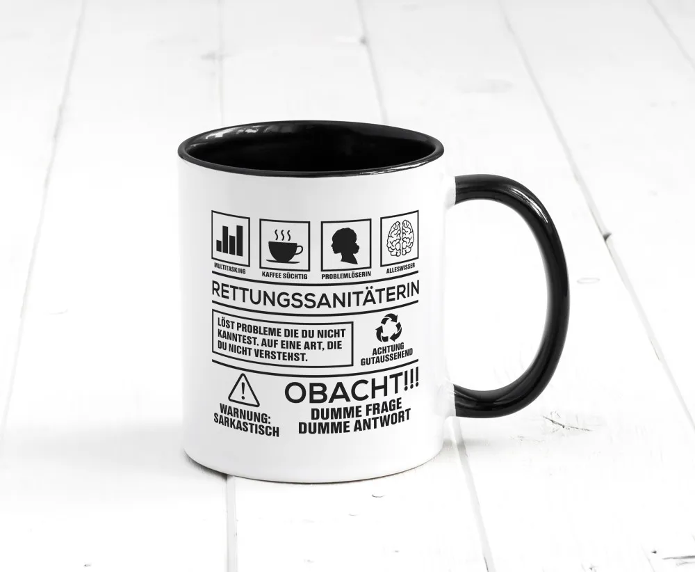 Achtung Probleme Rettungssanitäterin | Sanitäter Farbige Tasse – Kaffeetasse / Geschenk / Familie
