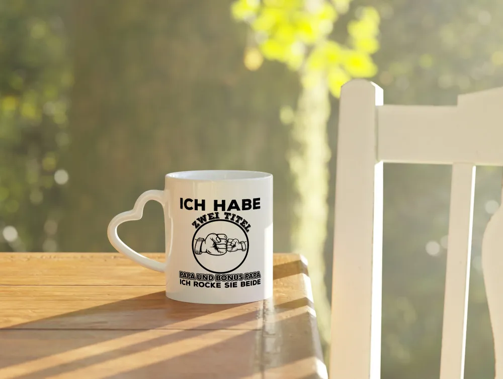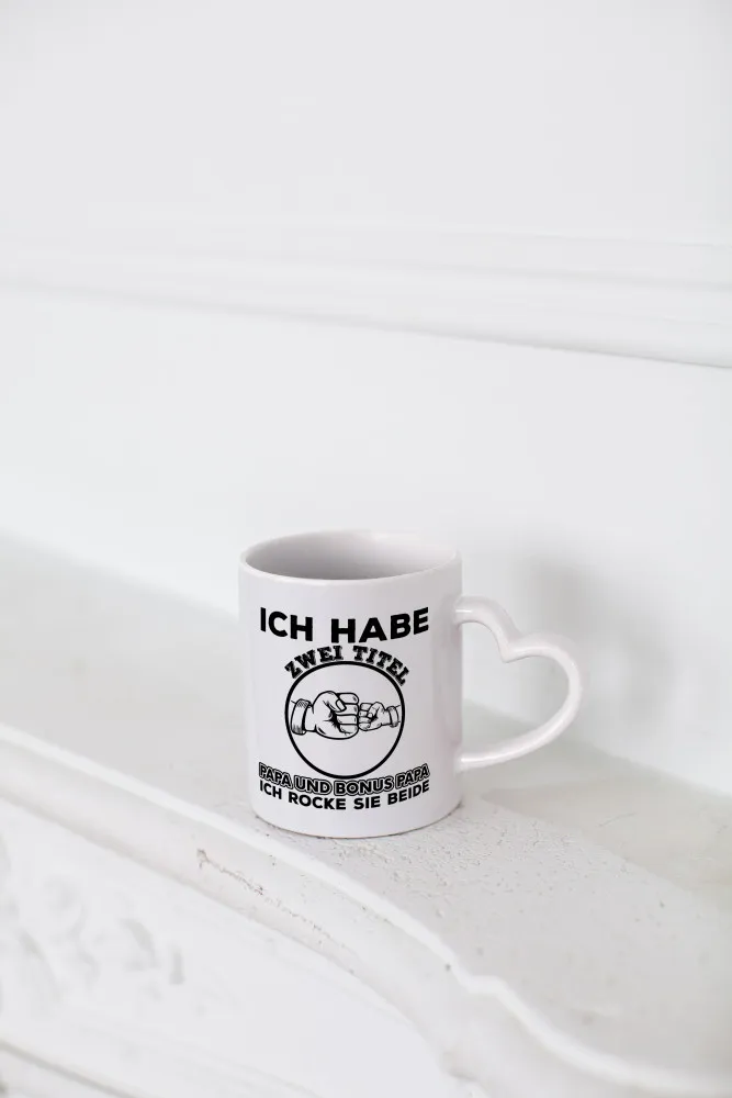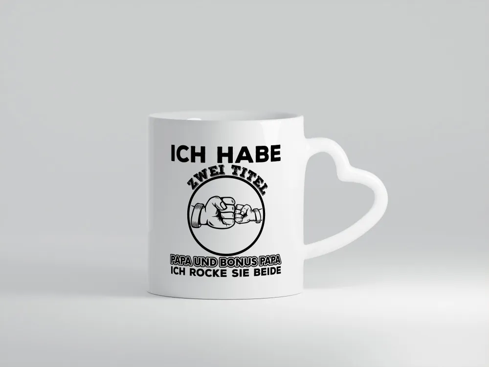 Papa und Bonus Papa | Vater Tasse | Männer | Vatertag – Herzhenkel Tasse – Kaffeetasse / Geschenk / Familie