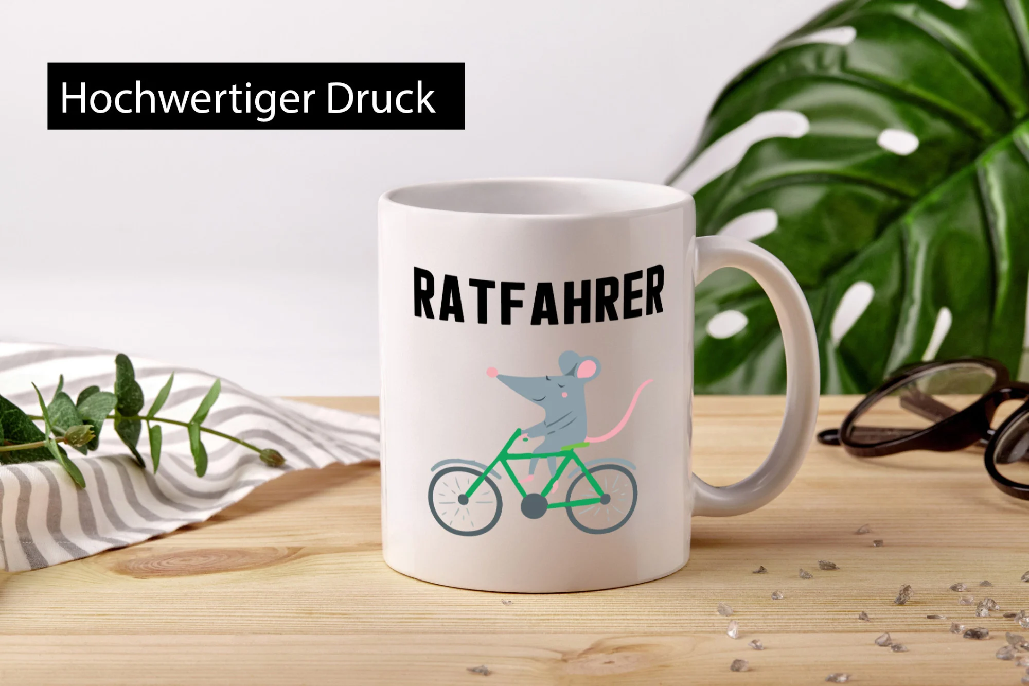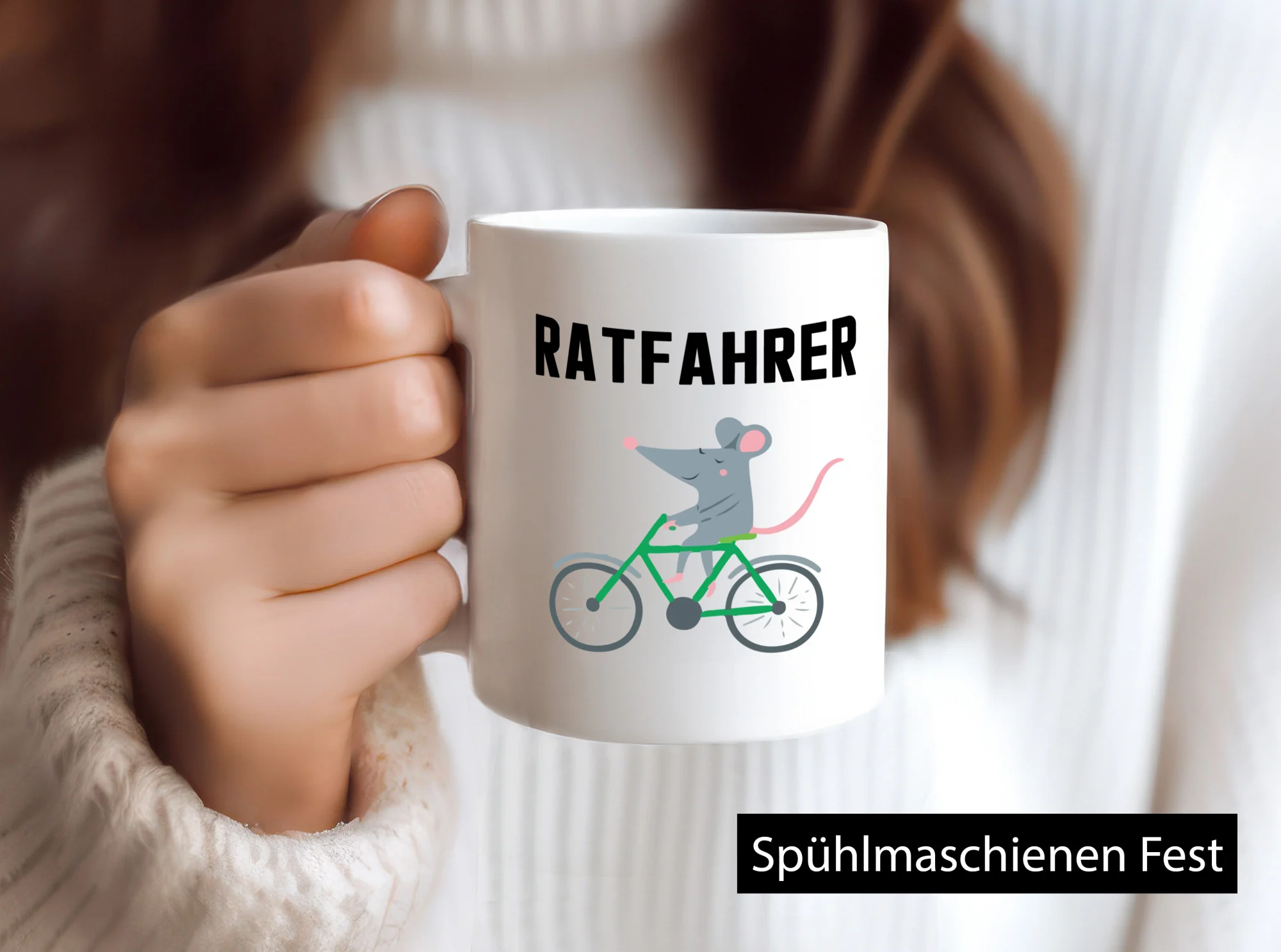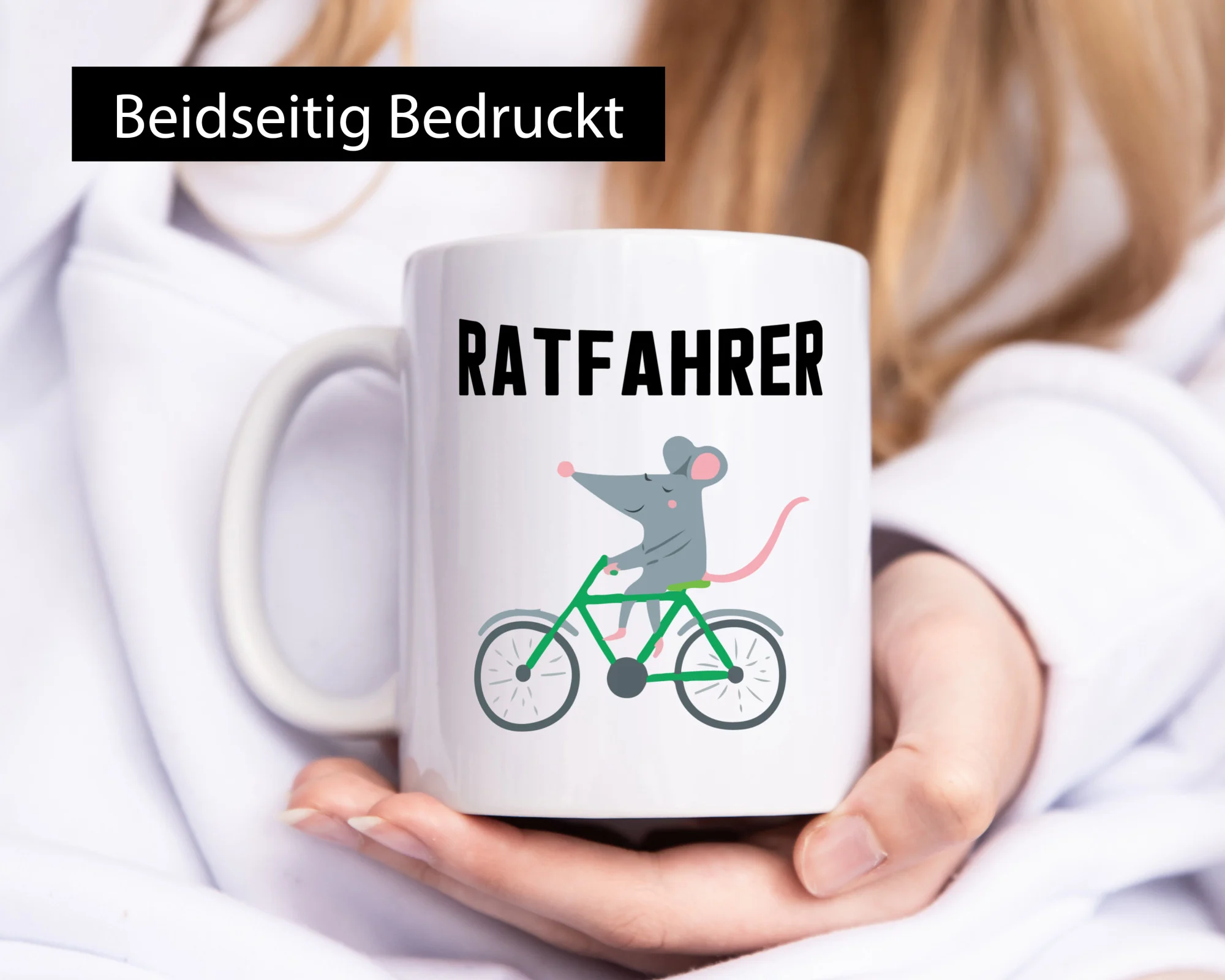 Ratfahrer Motiv | Radfahrer Tasse | Ratte | lustig – Tasse Weiß – Kaffeetasse / Geschenk / Familie