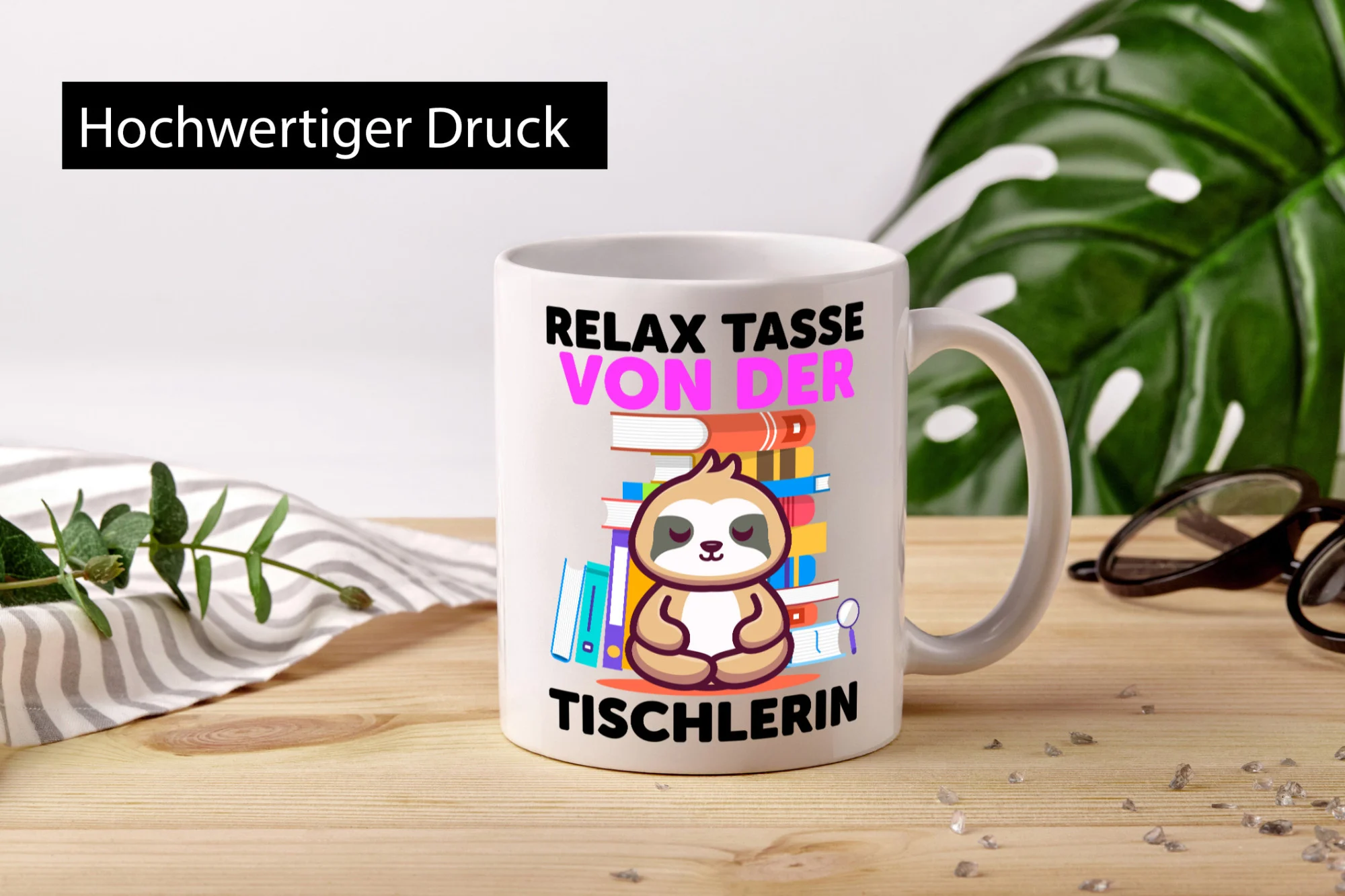 Relax Tasse: Tischlerin | Tischlerei – Tasse Weiß – Kaffeetasse / Geschenk / Familie