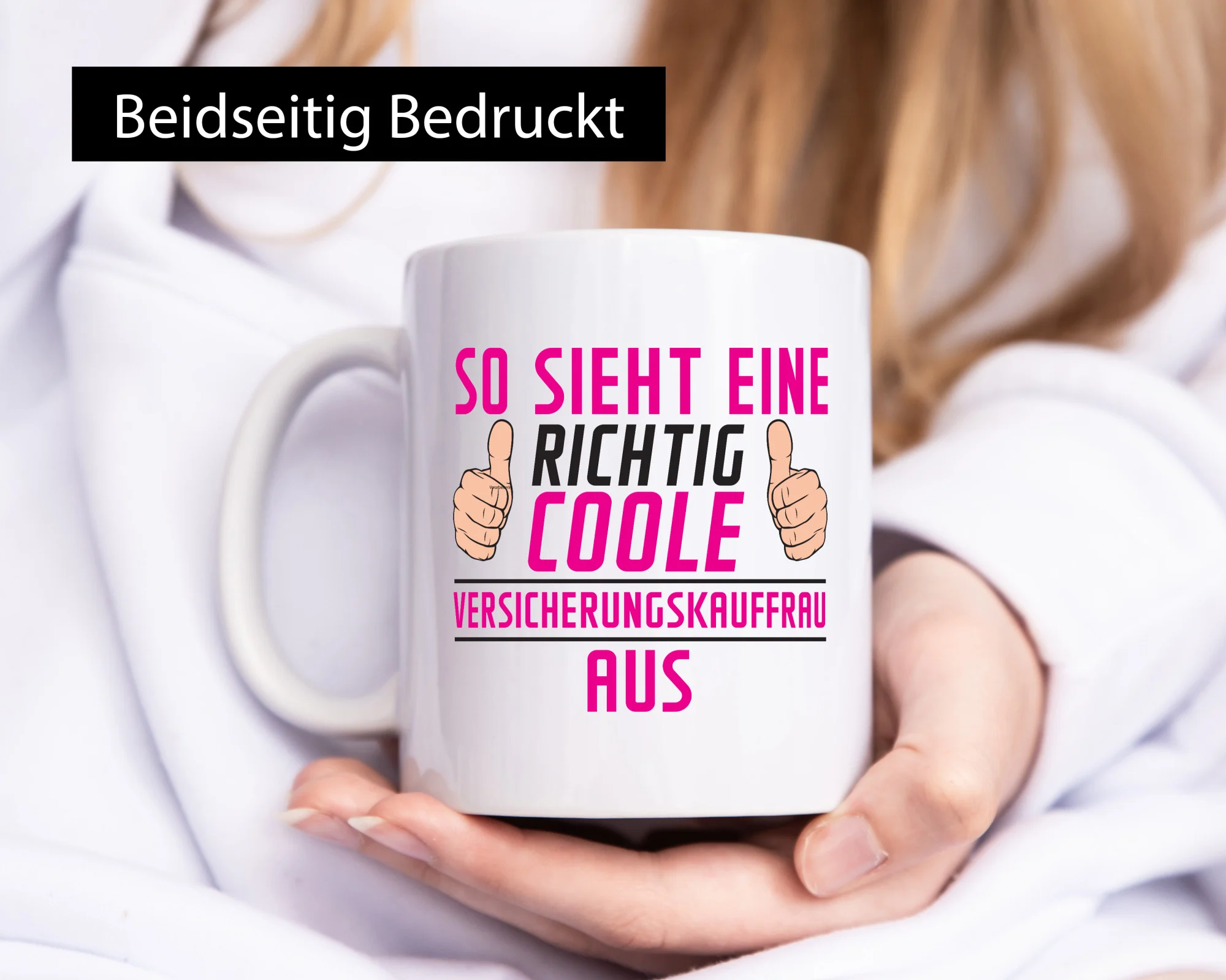 Die Tasse wird beidseitig in höchster Farbbrillanz bedruckt, sodass sie sowohl für Links- als auch Rechtshänder ideal geeignet ist. Der großzügige Henkel in C-Form liegt angenehm in der Hand und sorgt auch dann für einen festen Halt, wenn die Tasse befüllt ist. So lässt sich das wärmende Heißgetränk in aller Ruhe genießen.