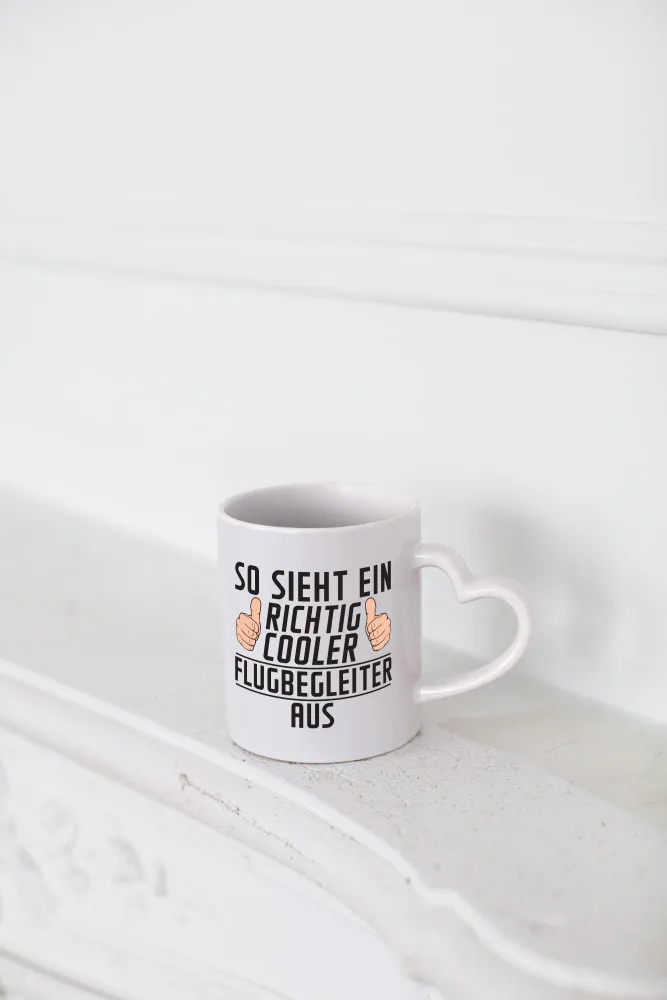 Richtig Cooler Flugbegleiter | Steward | Flughafen – Herzhenkel Tasse – Kaffeetasse / Geschenk / Familie