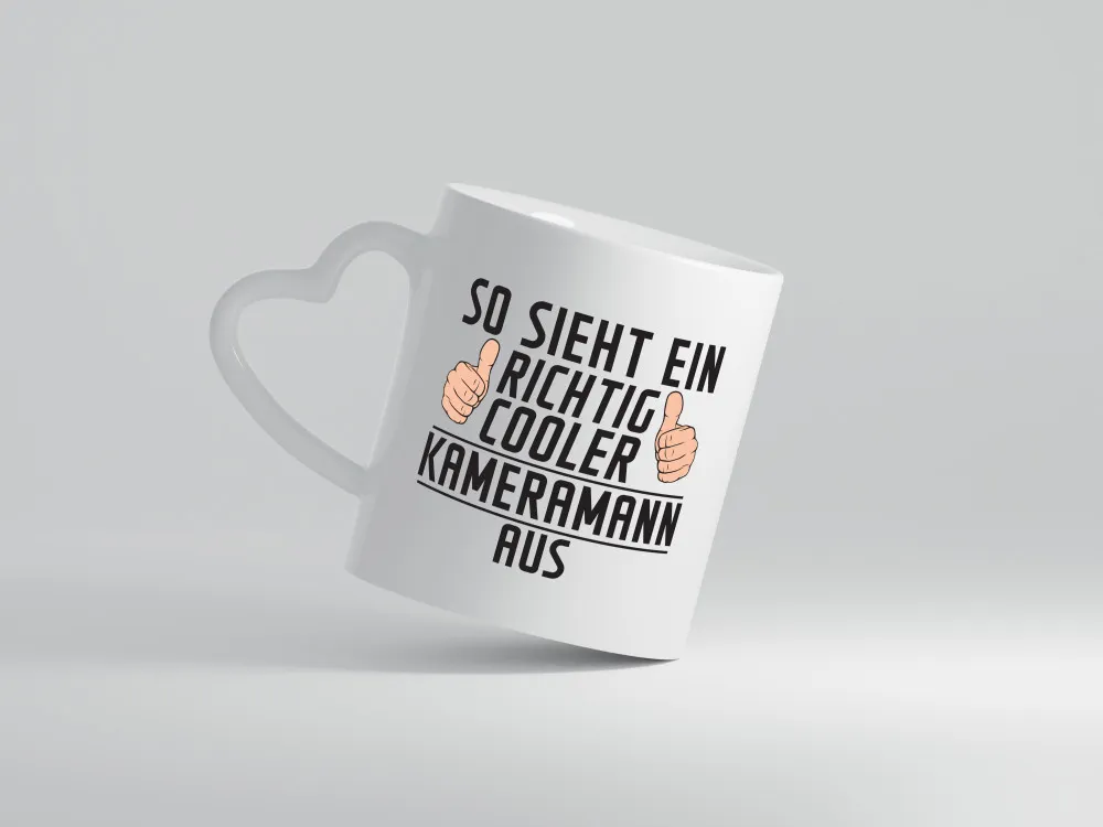 Richtig Cooler Kameramann | Kamera – Herzhenkel Tasse – Kaffeetasse / Geschenk / Familie