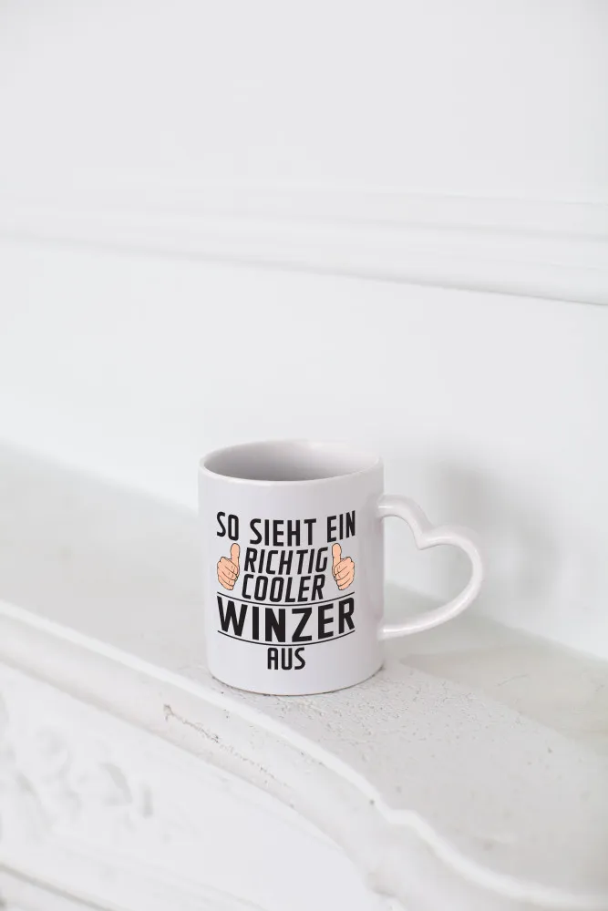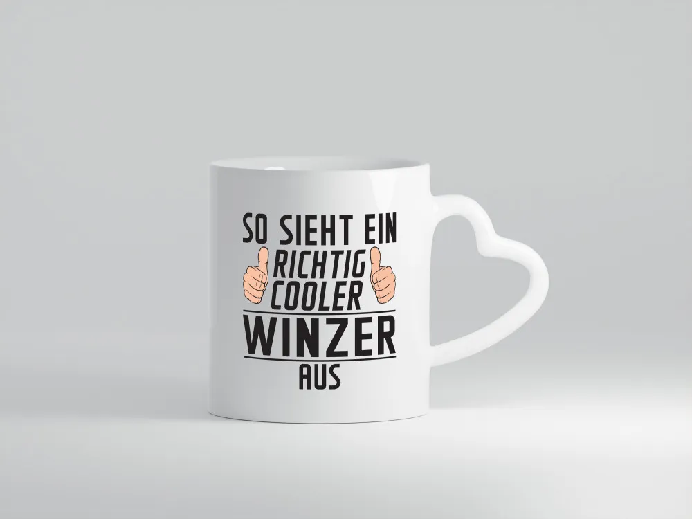 Richtig Cooler Winzer | Weinbauer | Wein – Herzhenkel Tasse – Kaffeetasse / Geschenk / Familie