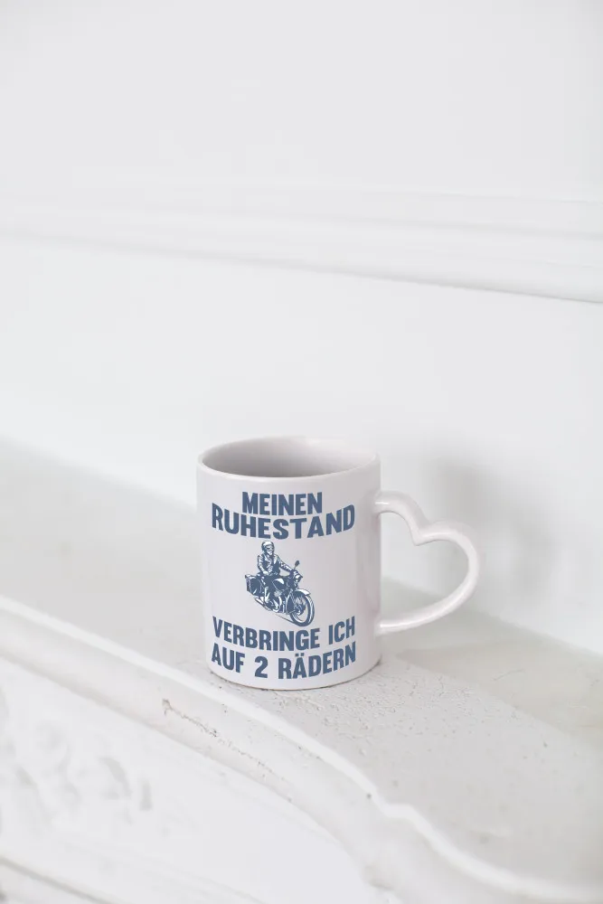 Ruhestand verbringe ich auf 2 Rädern | Opa | Motorrad – Herzhenkel Tasse – Kaffeetasse / Geschenk / Familie