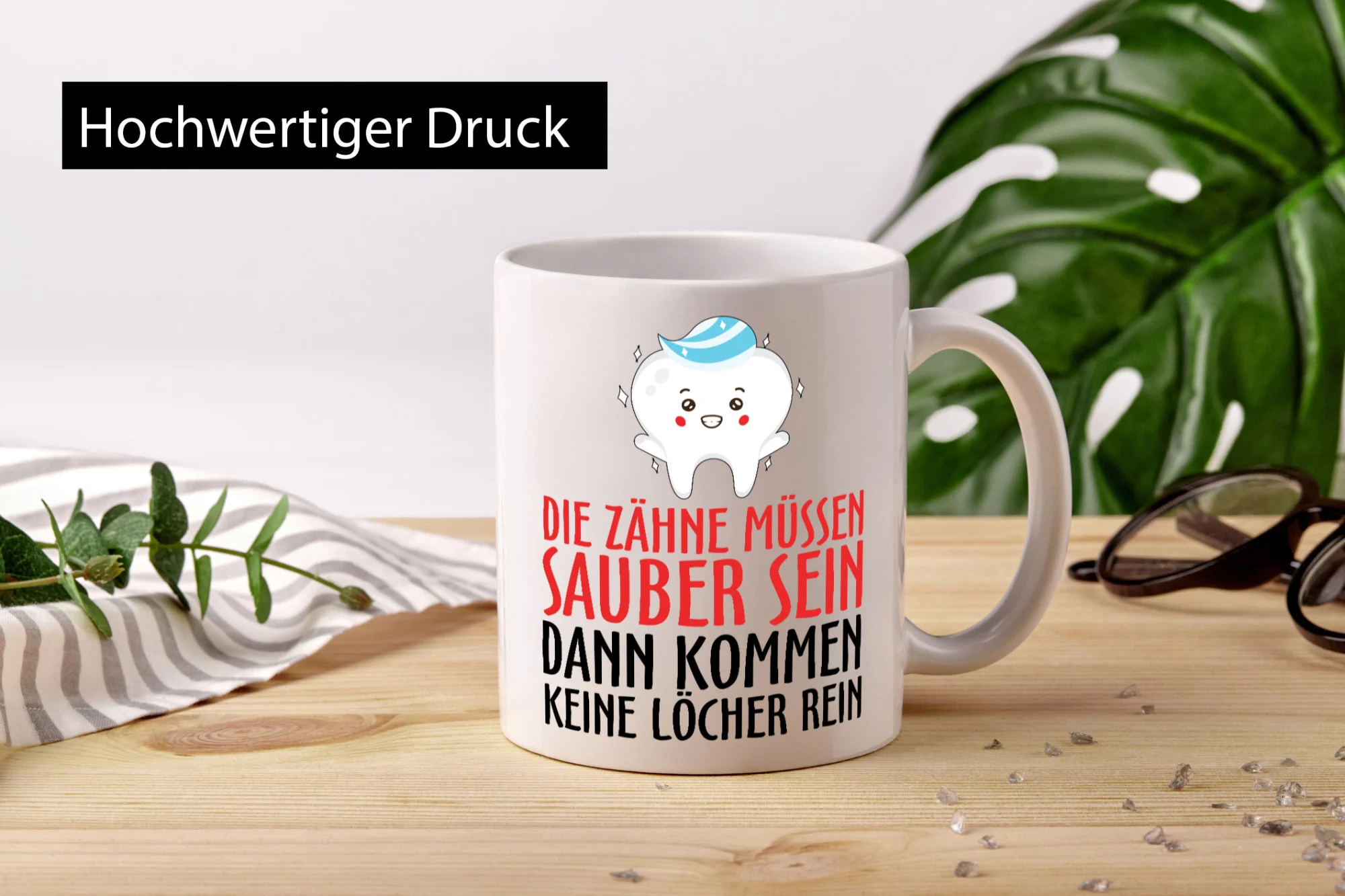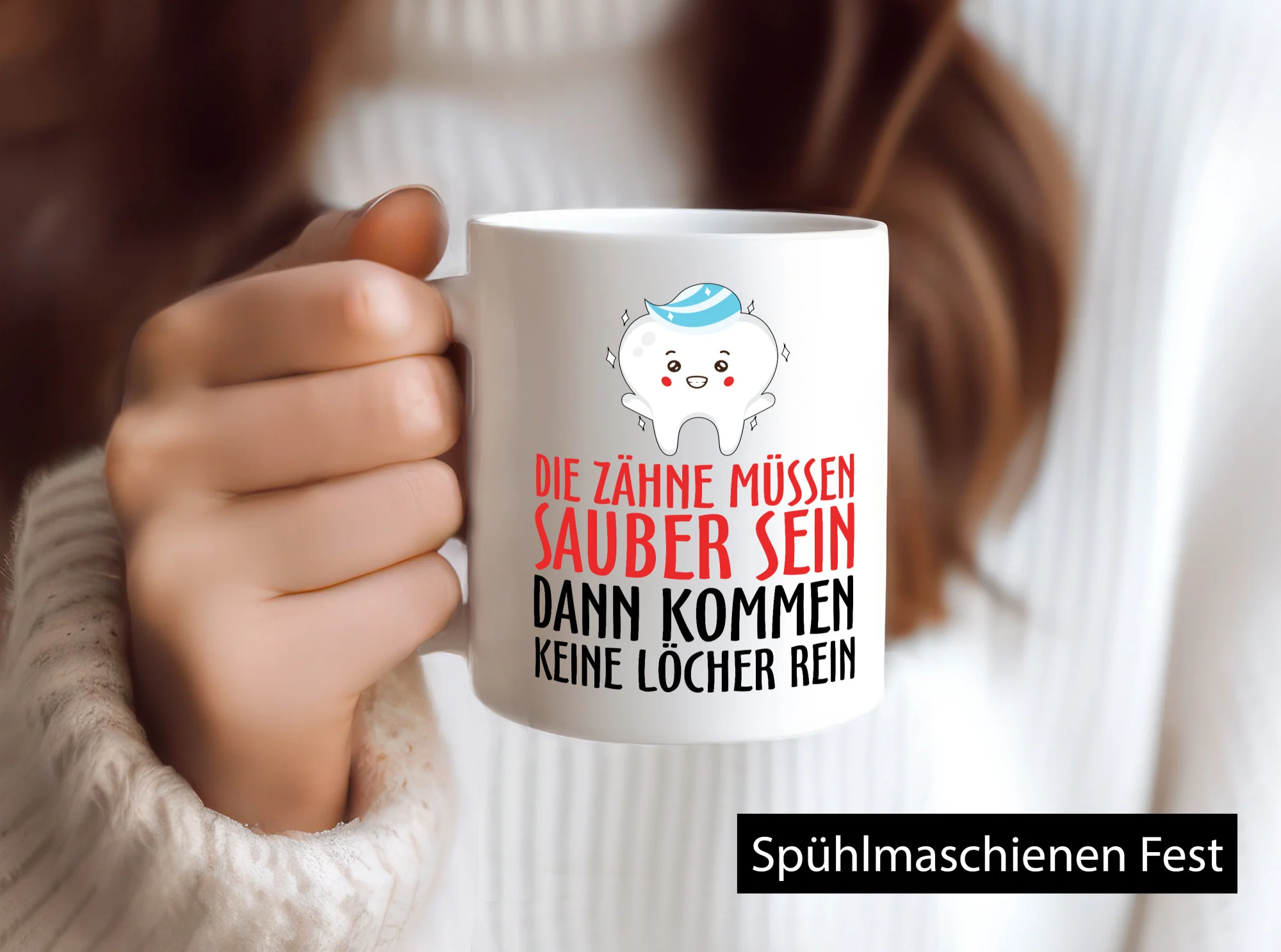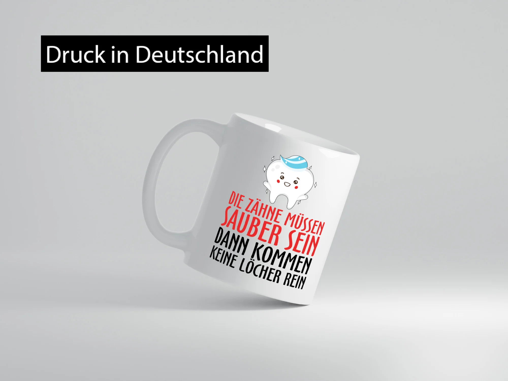 Sauber Zähne – Tasse Weiß – Kaffeetasse / Geschenk / Familie
