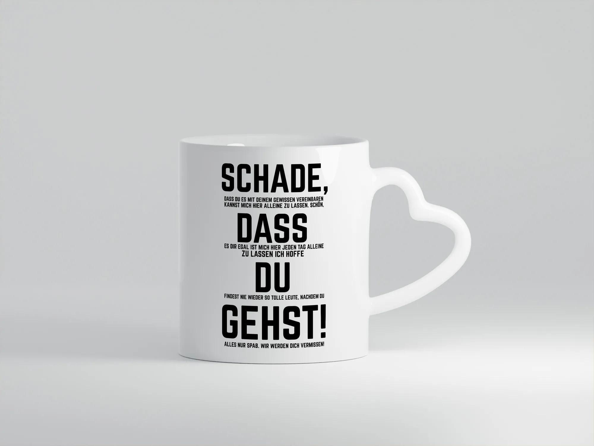 Schade das du gehst | Arbeitskollegen | Jobwechsel – Herzhenkel Tasse – Kaffeetasse / Geschenk / Familie