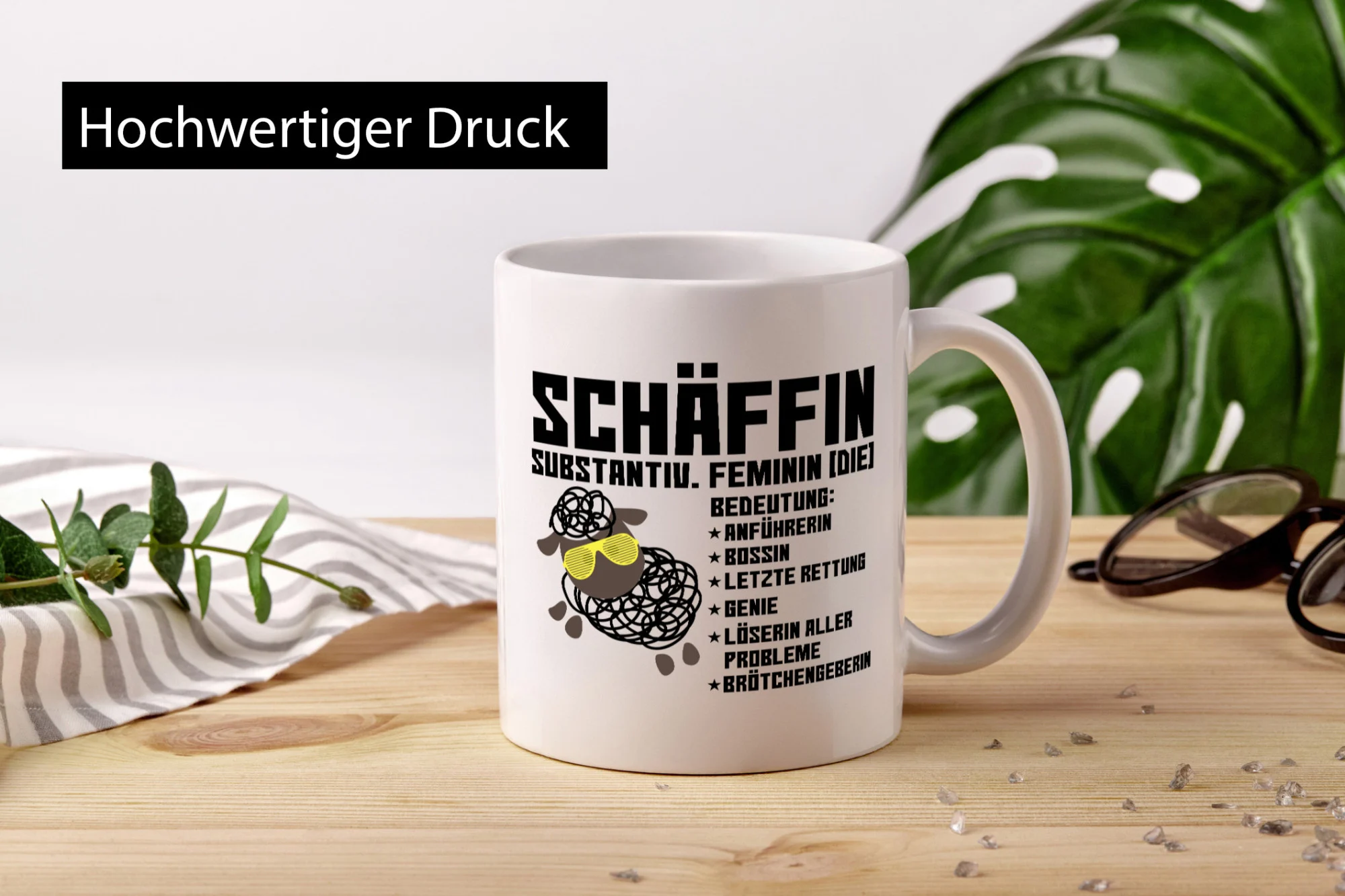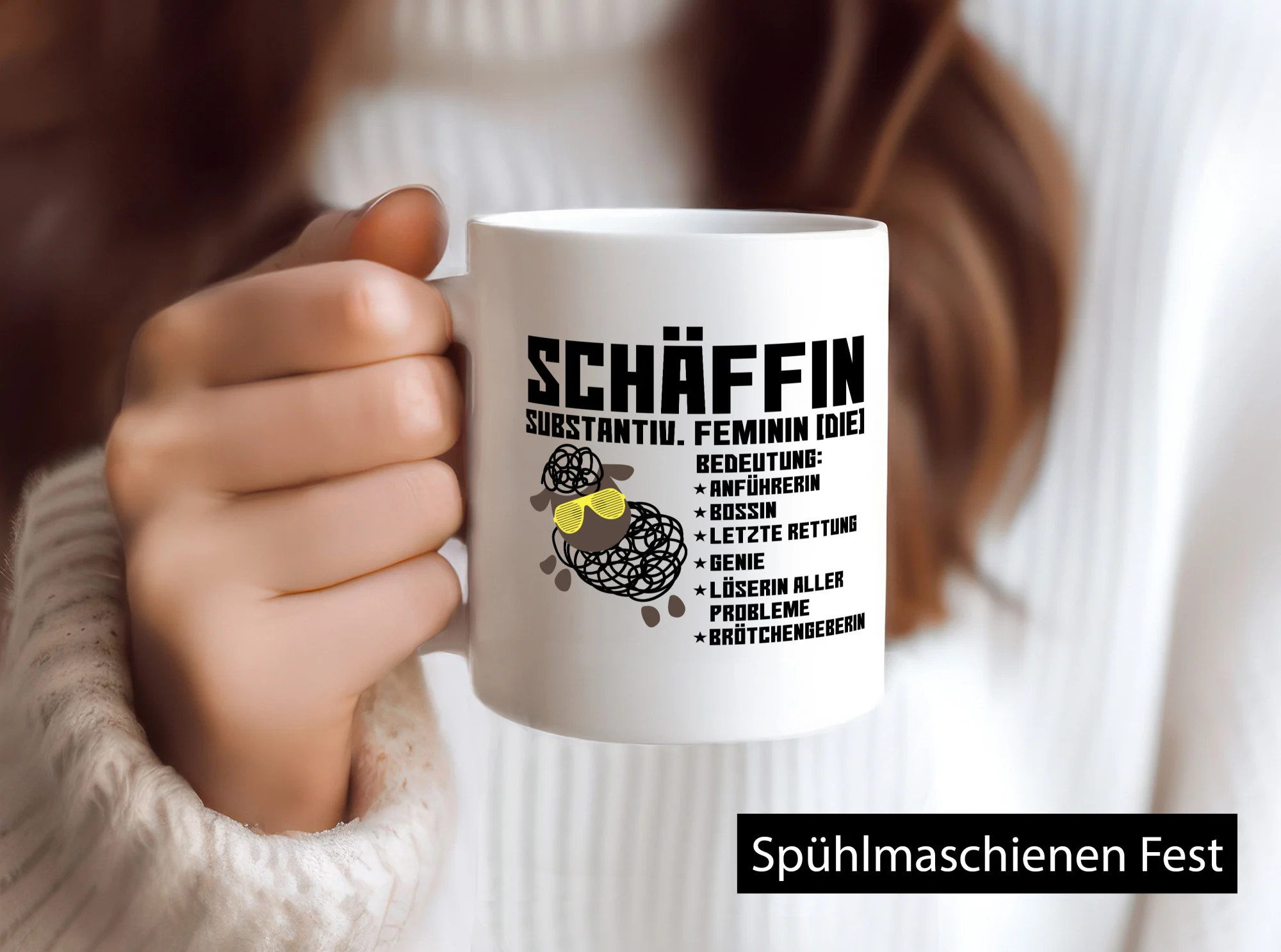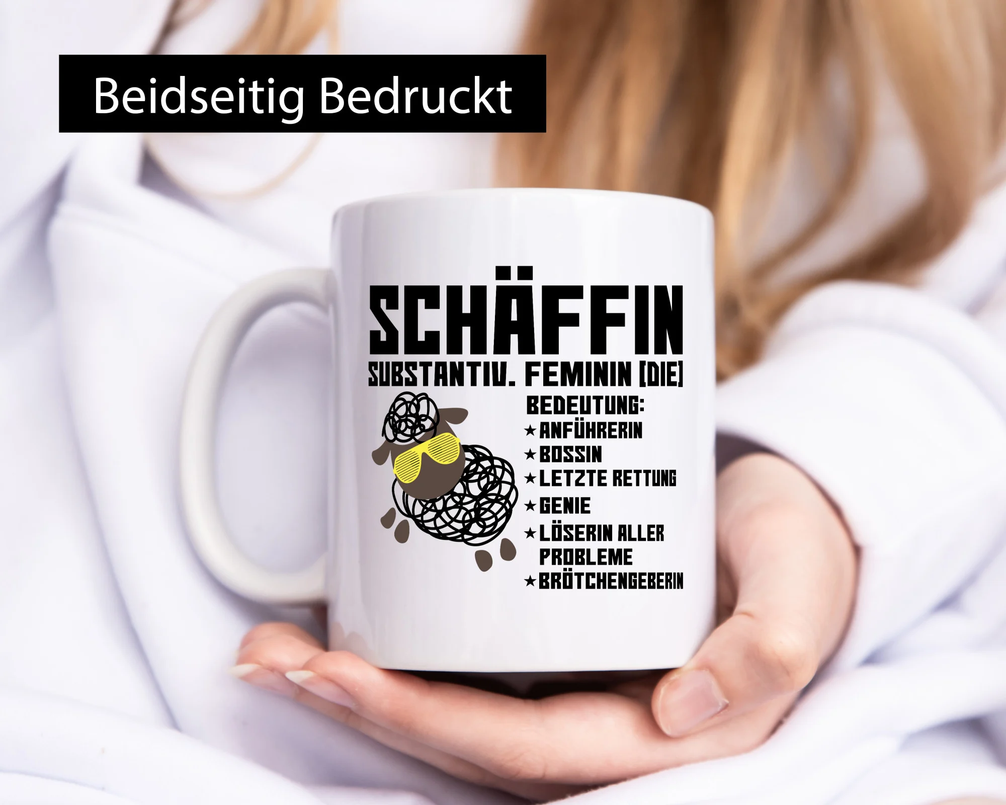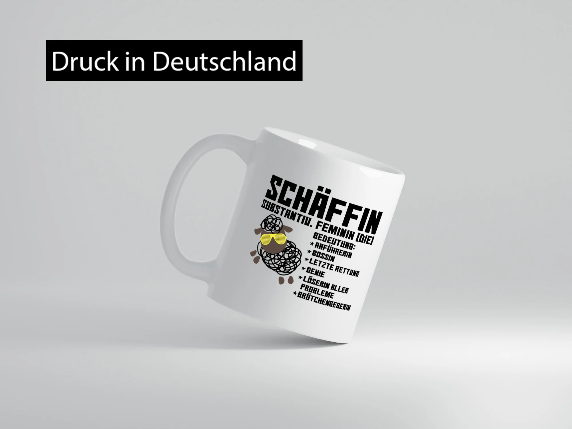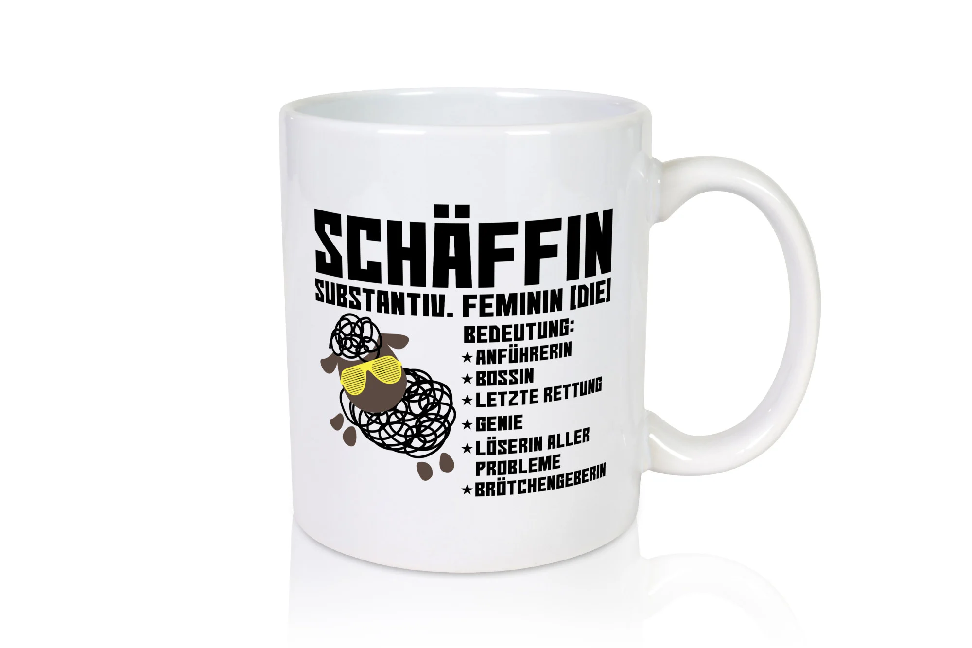 Schäffin | Chefin | Büro| Arbeit | lustiges Schaf mit Tasse – Tasse Weiß – Kaffeetasse / Geschenk / Familie
