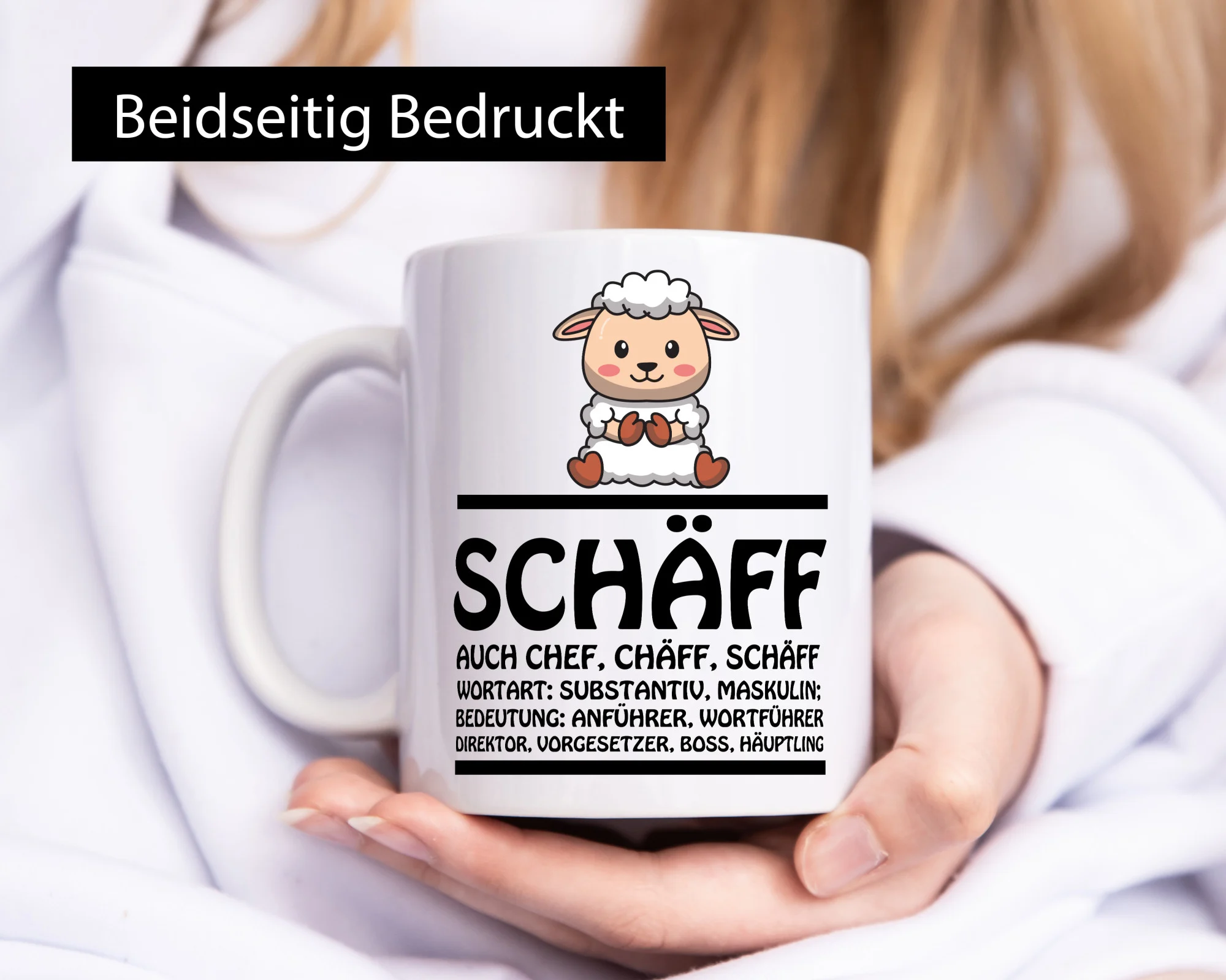 Die Tasse wird beidseitig in höchster Farbbrillanz bedruckt, sodass sie sowohl für Links- als auch Rechtshänder ideal geeignet ist. Der großzügige Henkel in C-Form liegt angenehm in der Hand und sorgt auch dann für einen festen Halt, wenn die Tasse befüllt ist. So lässt sich das wärmende Heißgetränk in aller Ruhe genießen.