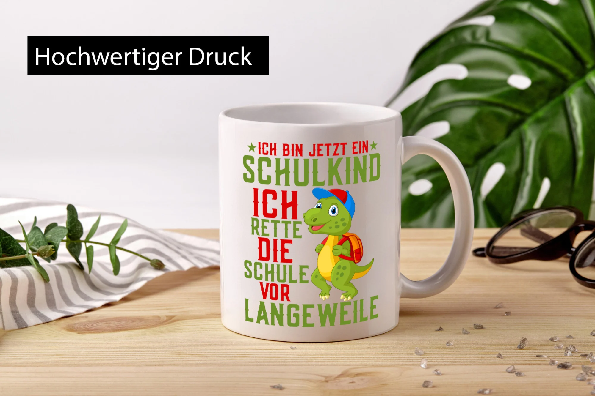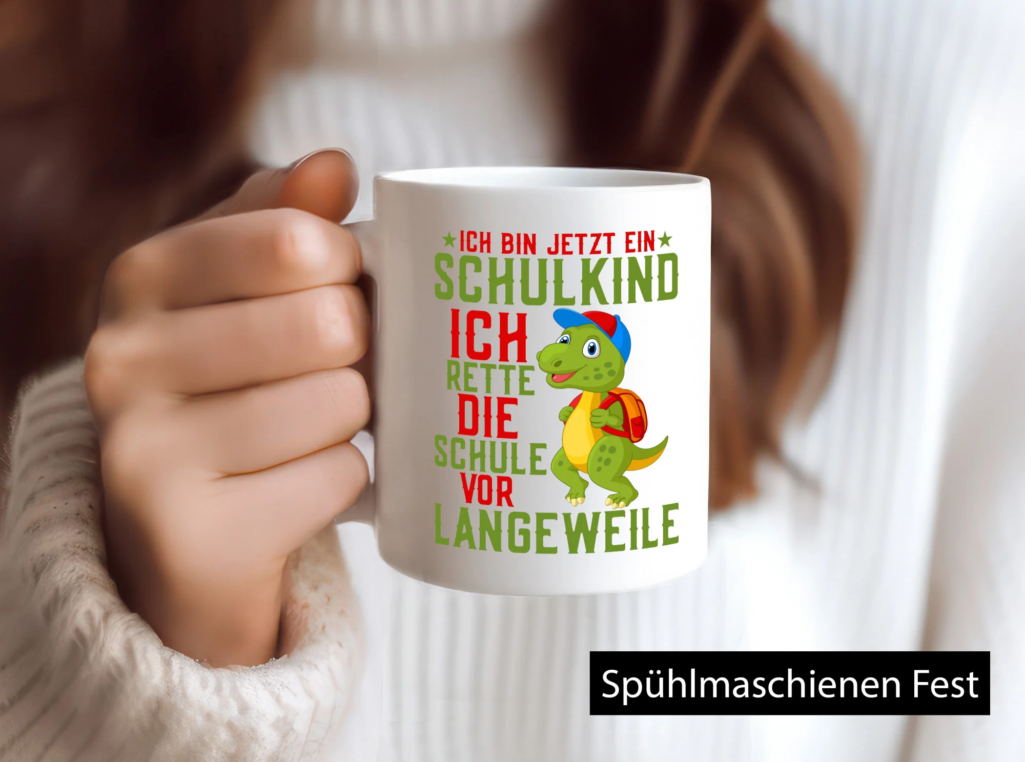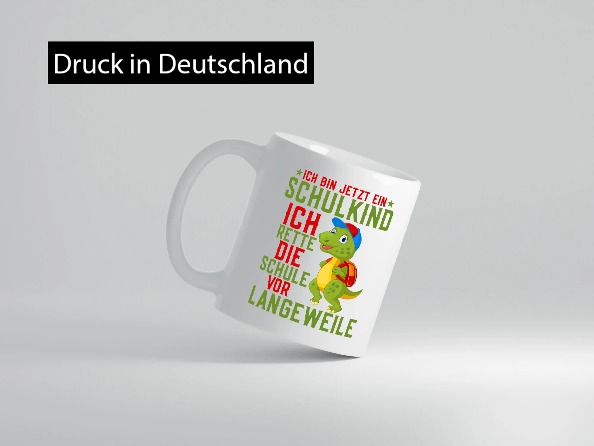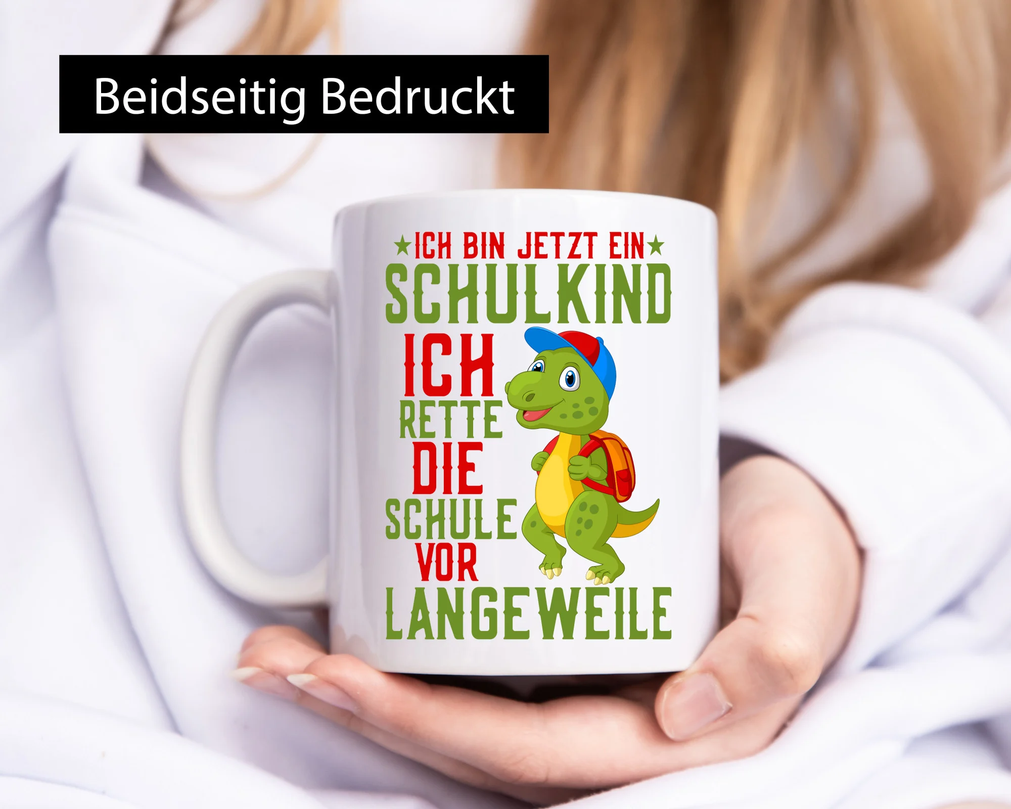 Schulkind | Langeweile | Schulbeginn | Comic | Dinosaurier – Tasse Weiß – Kaffeetasse / Geschenk / Familie