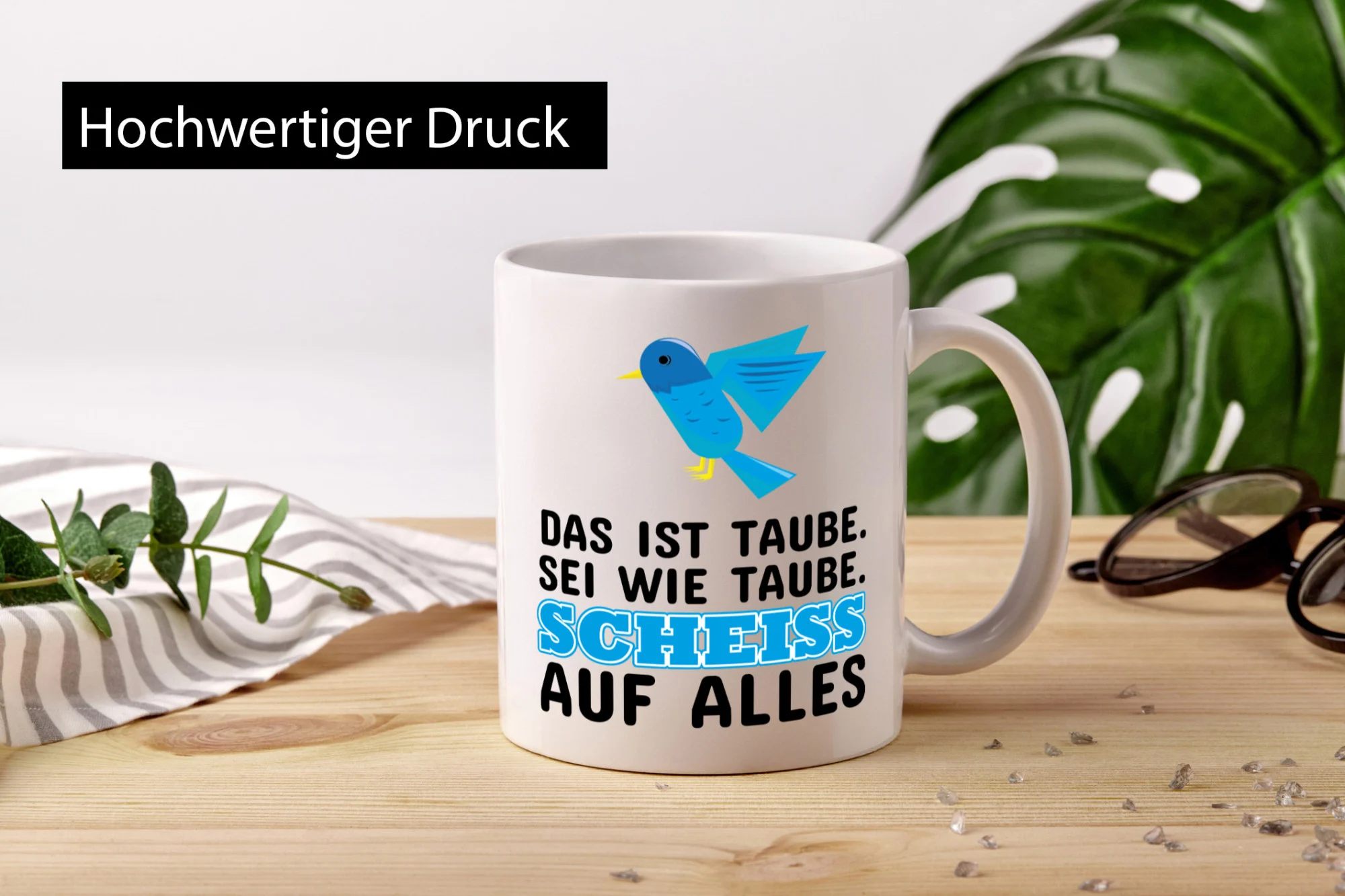 Unsere Tassen werden mit viel Liebe zum Detail gestaltet und in sorgfältiger Handarbeit beidseitig bedruckt. Es handelt sich bei den Spruchtassen nicht um reine Dekorationsobjekte, sondern um lebensmittelechte Qualitätsware Made in Germany. Nicht nur der Druck unserer Motive wird in Deutschland ausgeführt, sondern wir versenden unsere Produkte auch von hier aus. Für langlebige Produkte und höchste Kundenzufriedenheit!