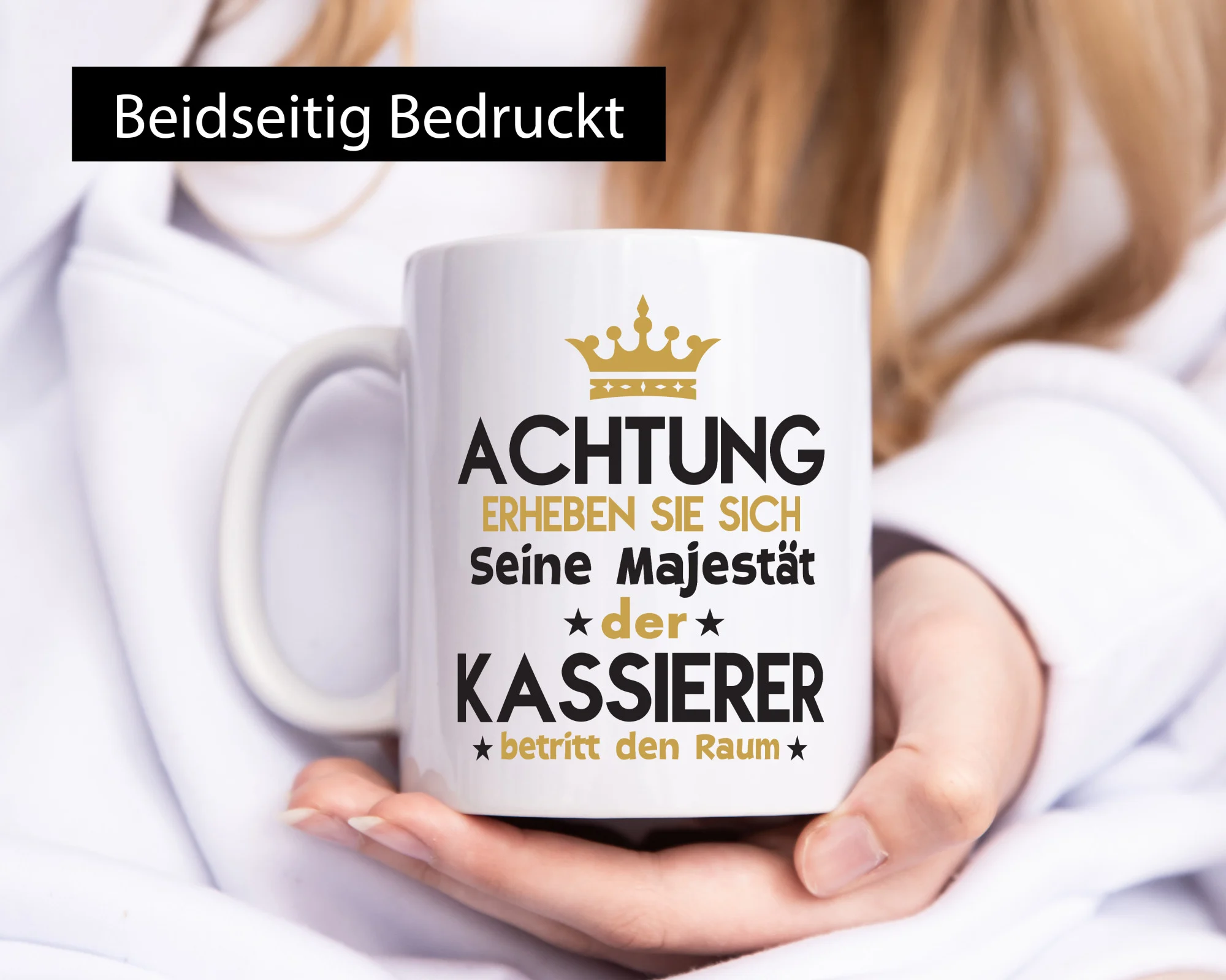 Die Tasse wird beidseitig in höchster Farbbrillanz bedruckt, sodass sie sowohl für Links- als auch Rechtshänder ideal geeignet ist. Der großzügige Henkel in C-Form liegt angenehm in der Hand und sorgt auch dann für einen festen Halt, wenn die Tasse befüllt ist. So lässt sich das wärmende Heißgetränk in aller Ruhe genießen.