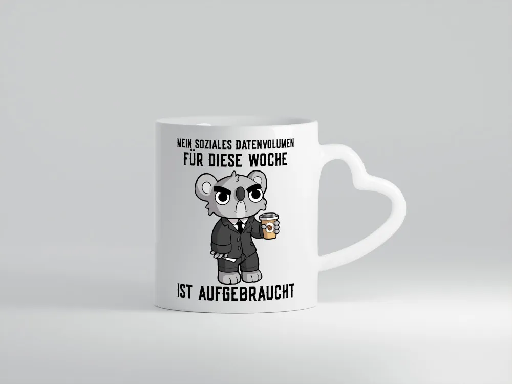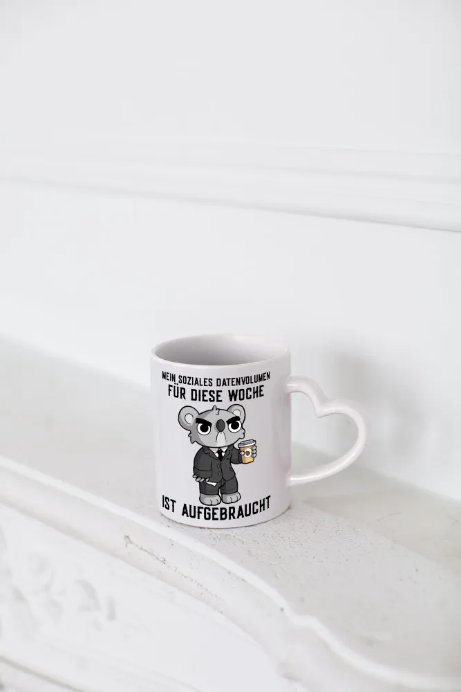 Soziales Datenvolumen | wütender Bär | Einzelgänger | Nerd – Herzhenkel Tasse – Kaffeetasse / Geschenk / Familie