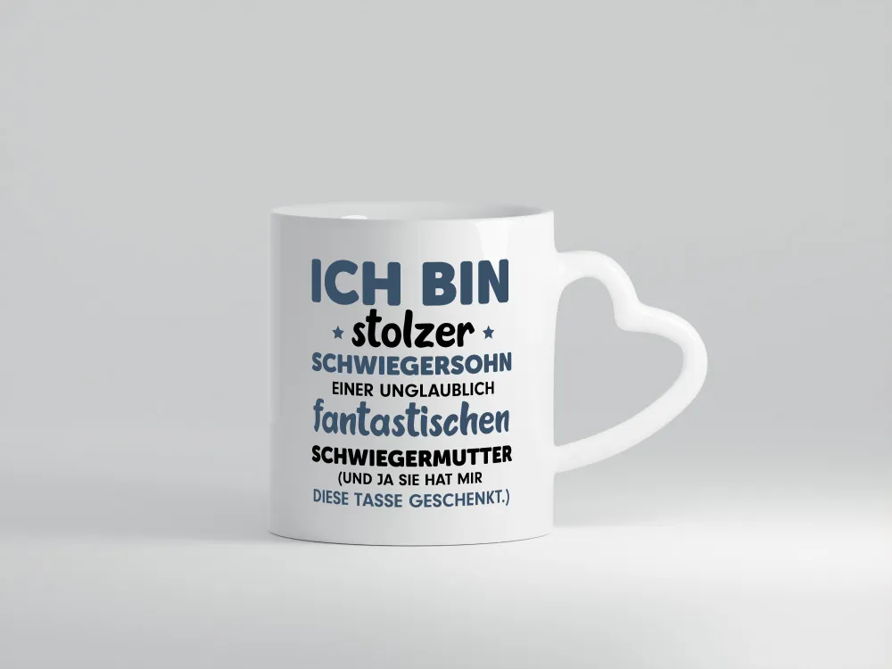 Stolzer Schwiegersohn | Spruch | Schwiegermutter Humor – Herzhenkel Tasse – Kaffeetasse / Geschenk / Familie