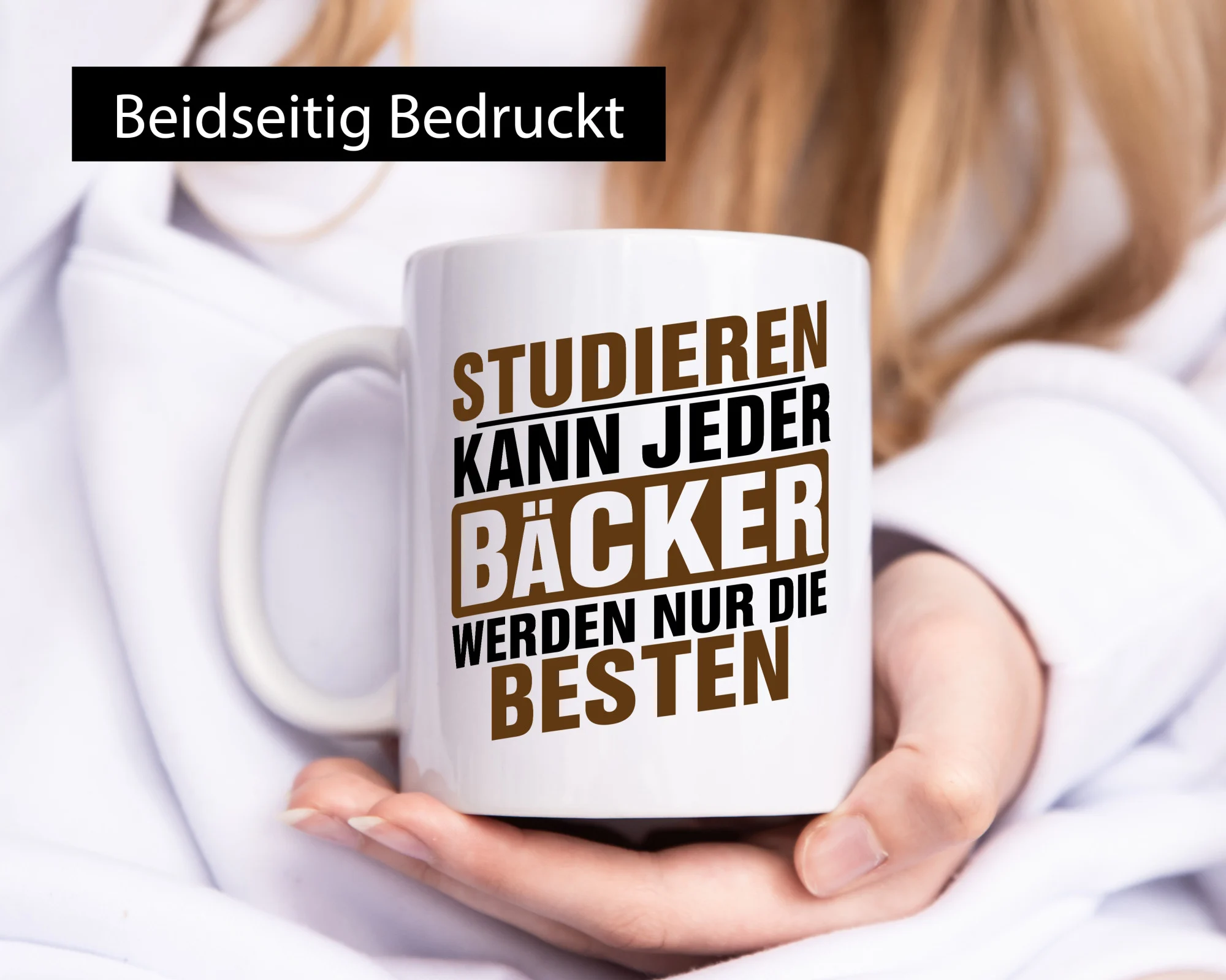Die Tasse wird beidseitig in höchster Farbbrillanz bedruckt, sodass sie sowohl für Links- als auch Rechtshänder ideal geeignet ist. Der großzügige Henkel in C-Form liegt angenehm in der Hand und sorgt auch dann für einen festen Halt, wenn die Tasse befüllt ist. So lässt sich das wärmende Heißgetränk in aller Ruhe genießen.