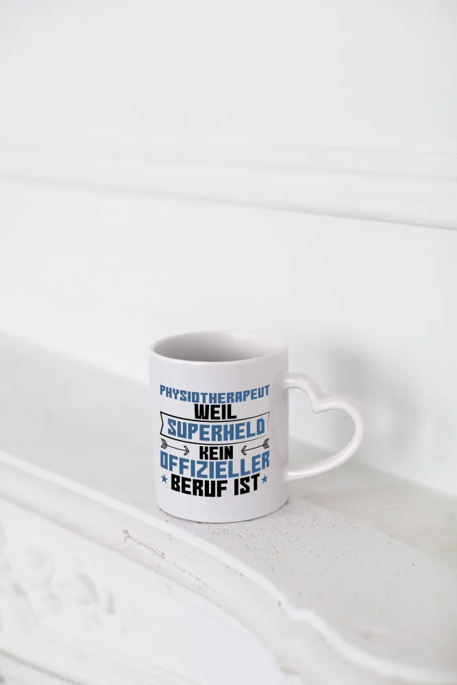 Superheld Physiotherapeut – Herzhenkel Tasse – Kaffeetasse / Geschenk / Familie