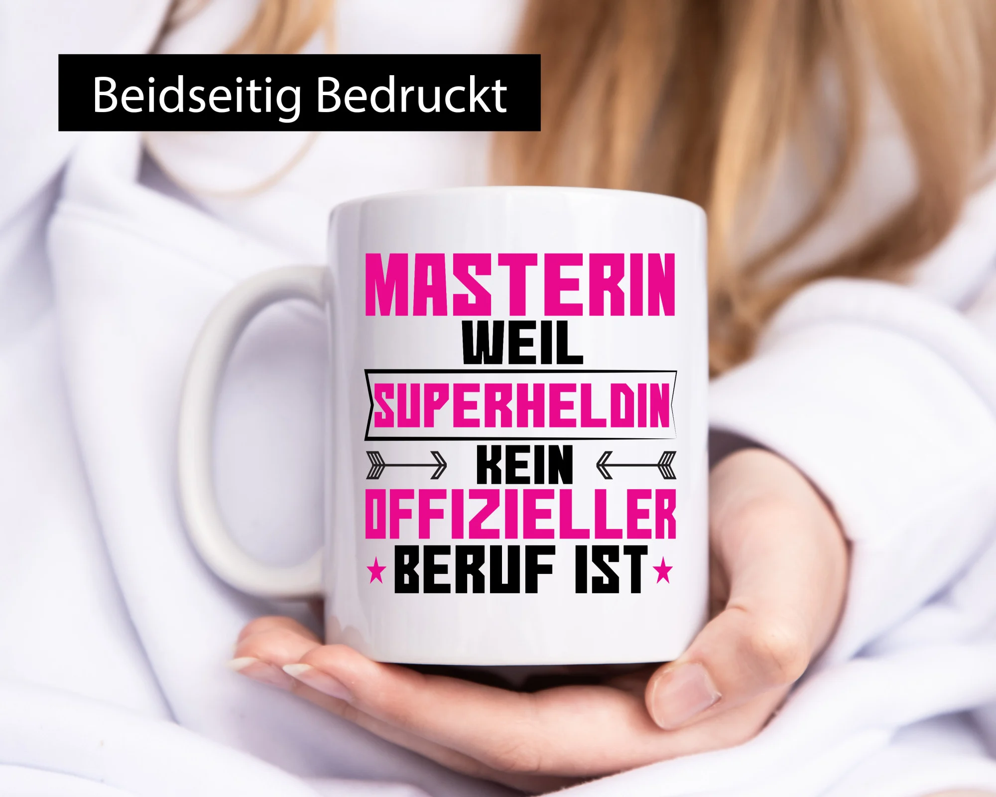 Superheldin Masterin | Student | Uni | Master Studium – Tasse Weiß – Kaffeetasse / Geschenk / Familie