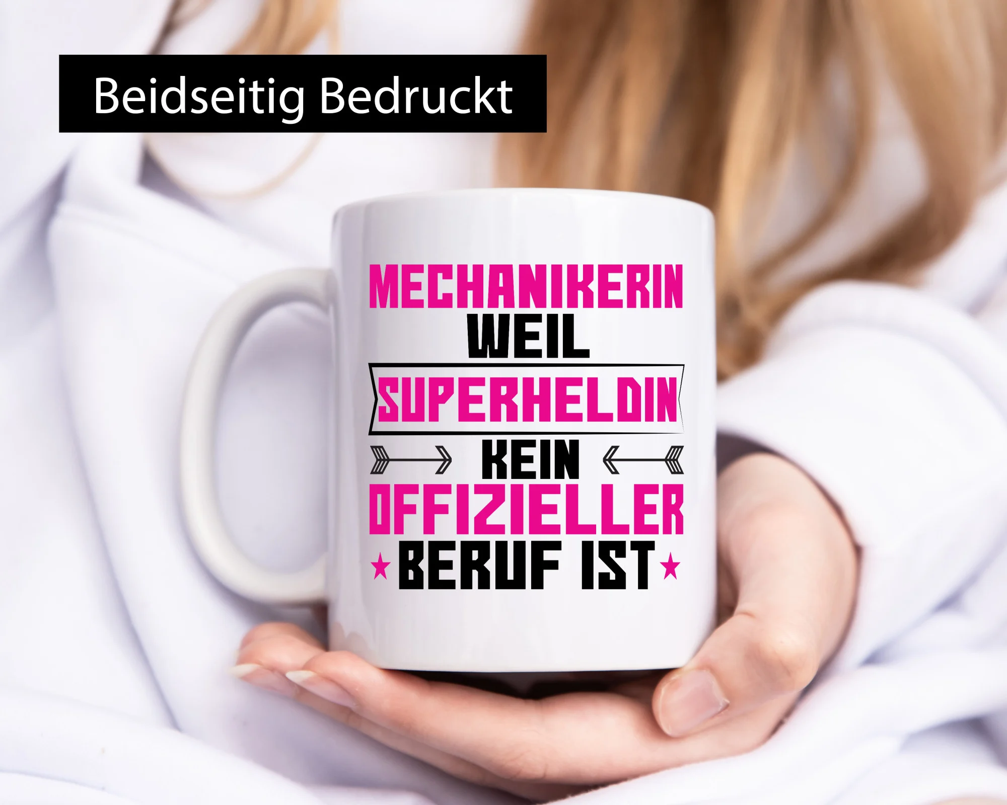 Superheldin Mechanikerin | KFZ – Tasse Weiß – Kaffeetasse / Geschenk / Familie