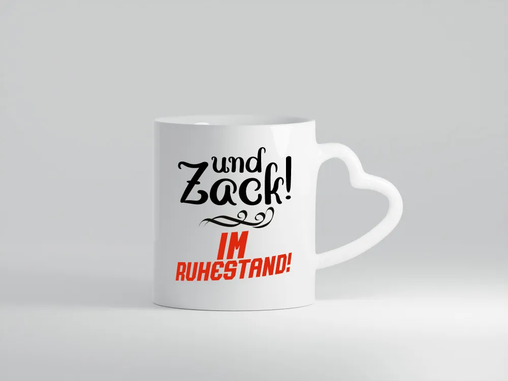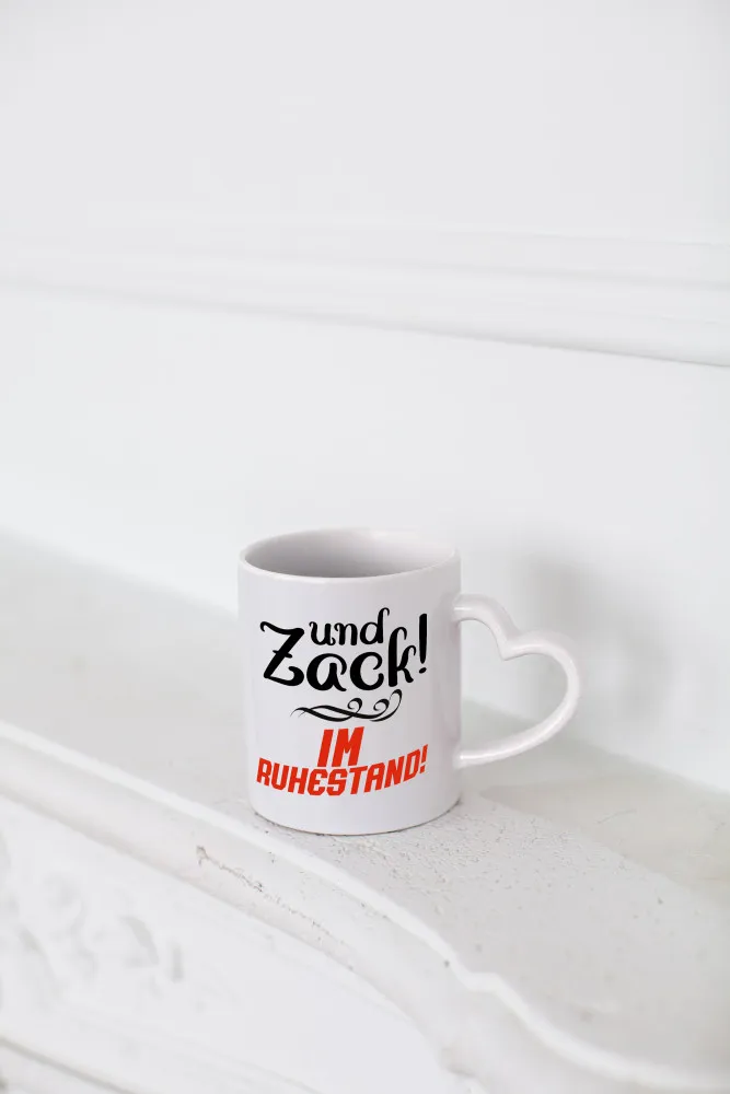Und zack im Ruhestand | Rentner | Ruhestand | Pension – Herzhenkel Tasse – Kaffeetasse / Geschenk / Familie