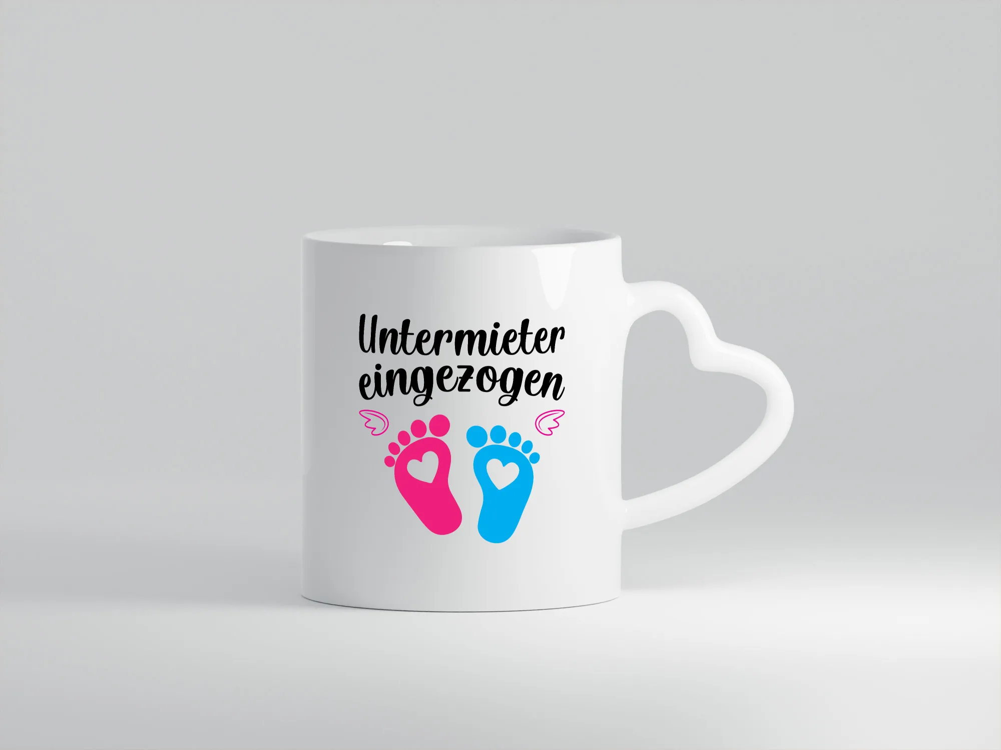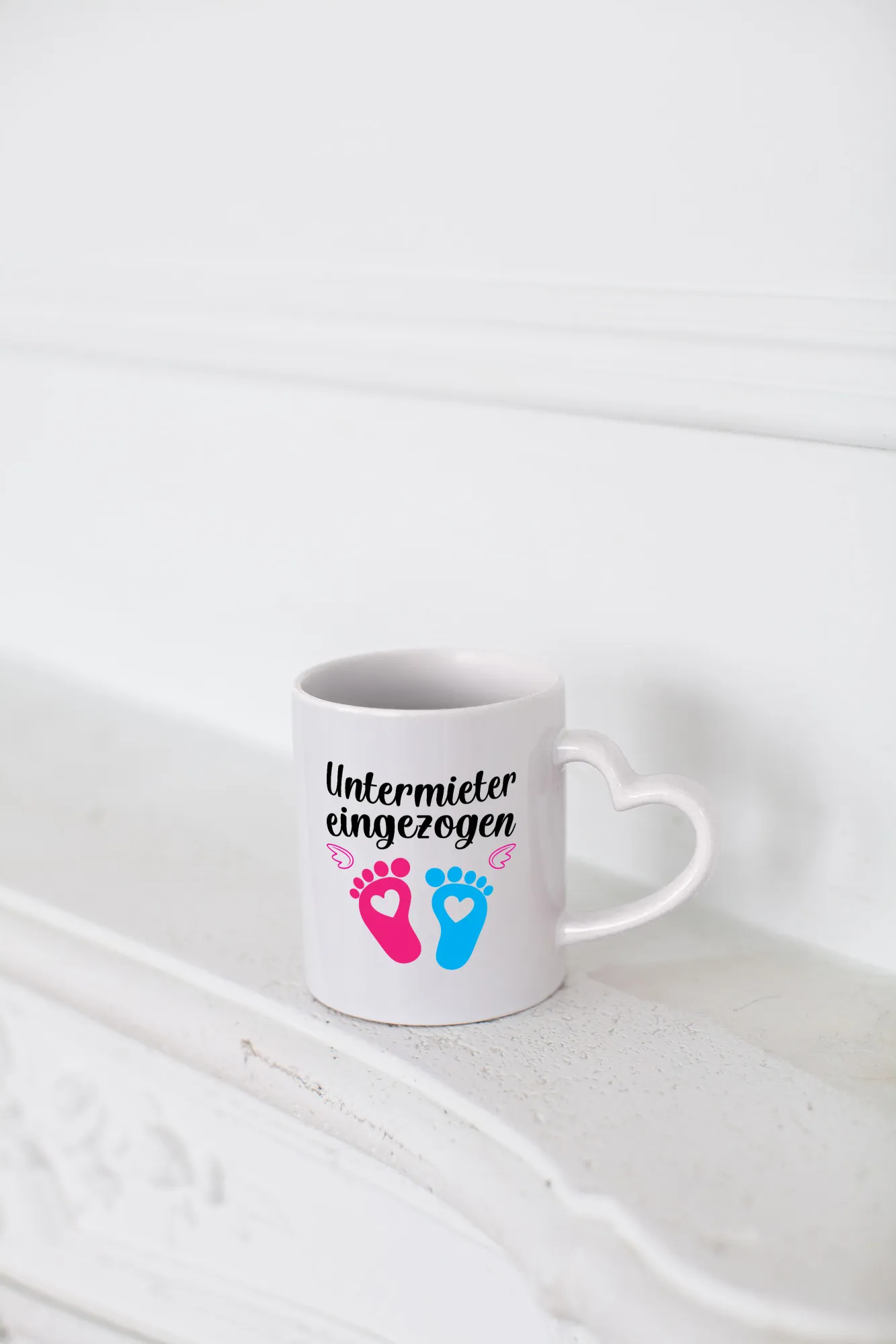 Untermieter eingezogen | Babyfüsschen – Herzhenkel Tasse – Kaffeetasse / Geschenk / Familie