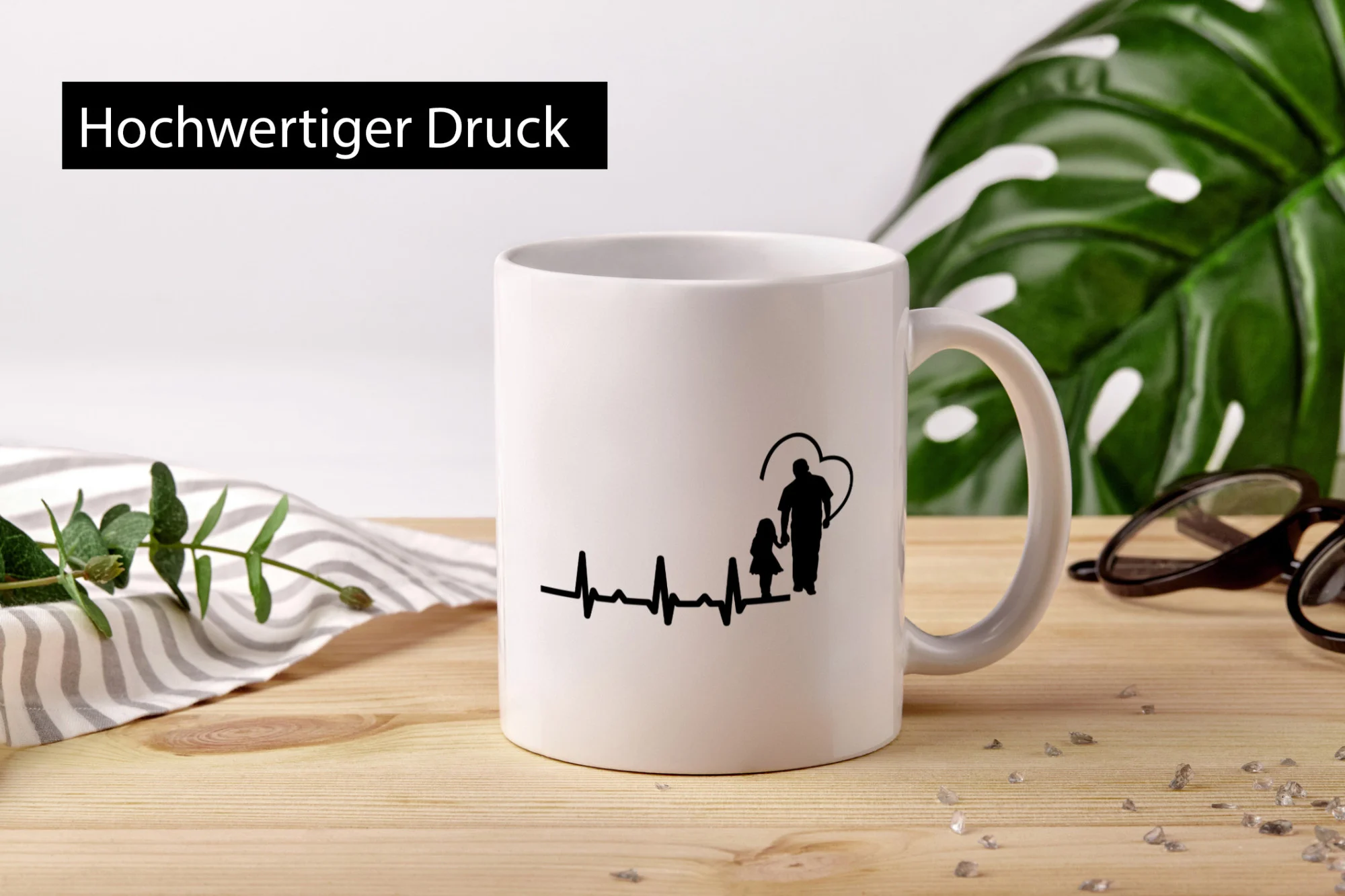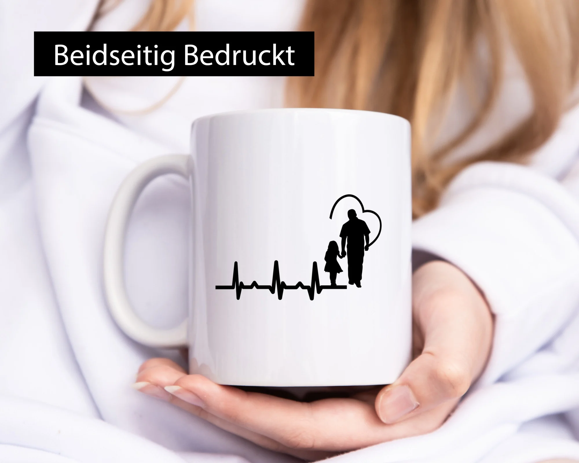 Die Tasse wird beidseitig in höchster Farbbrillanz bedruckt, sodass sie sowohl für Links- als auch Rechtshänder ideal geeignet ist. Der großzügige Henkel in C-Form liegt angenehm in der Hand und sorgt auch dann für einen festen Halt, wenn die Tasse befüllt ist. So lässt sich das wärmende Heißgetränk in aller Ruhe genießen.