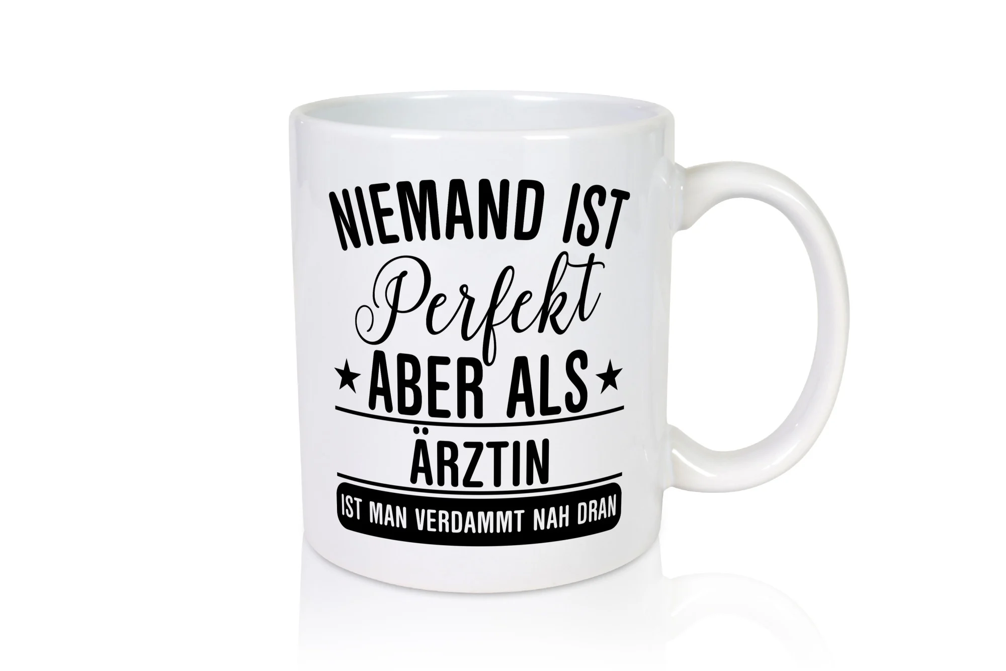 Verdammt nah dran: Ärztin | Medizin | Doktorin | Fachärztin – Tasse Weiß – Kaffeetasse / Geschenk / Familie
