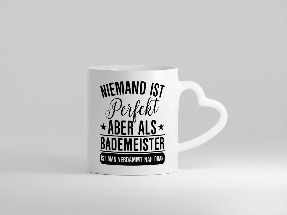 Verdammt nah dran: Bademeister | Rettungsschwimmer – Herzhenkel Tasse – Kaffeetasse / Geschenk / Familie